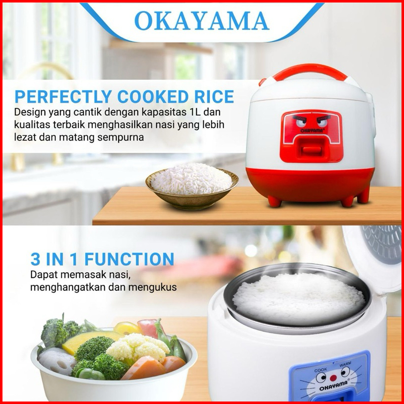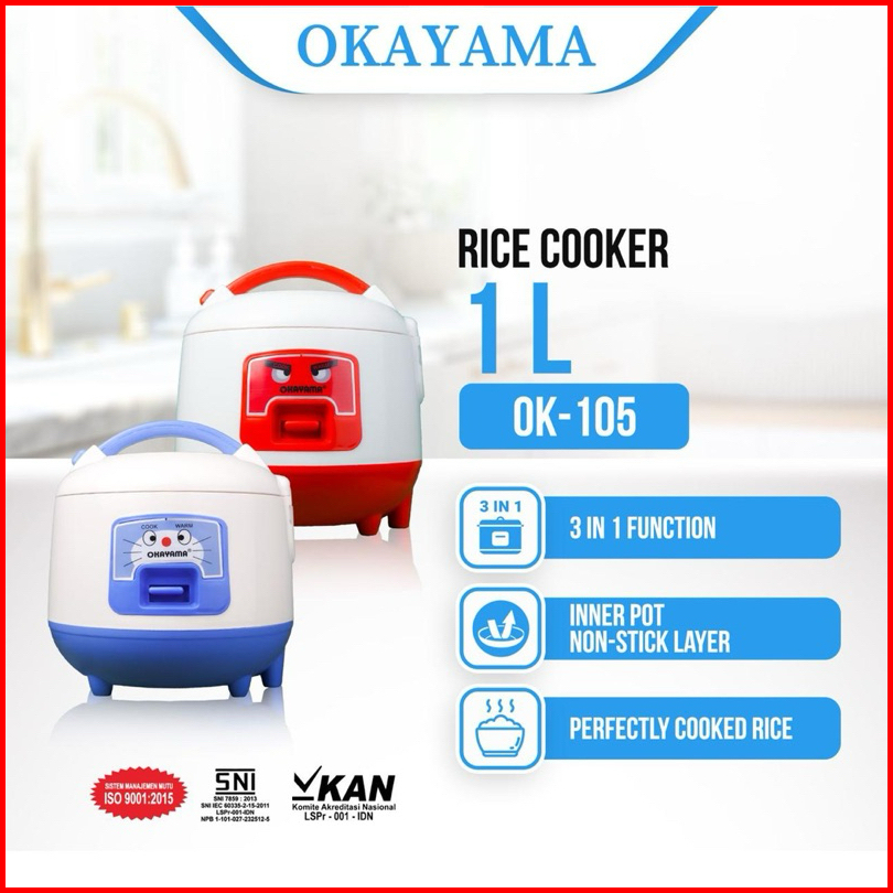 Okayama Rice Cooker Ok-105 1 Liter Magic Com Penanak Nasi Anti Lengket 1 Liter Putih Biru