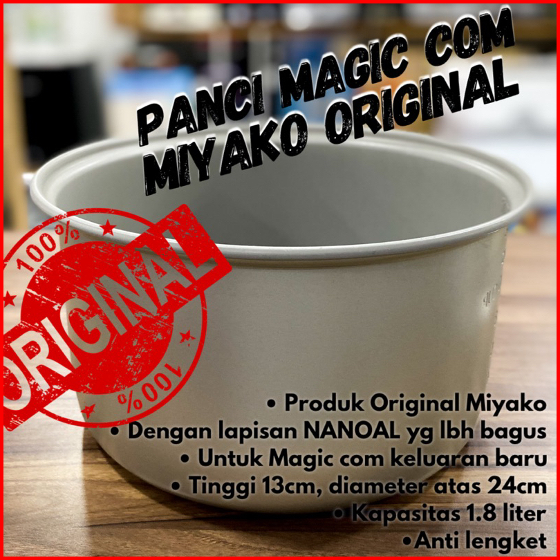Panci Teflon Magic Com Miyako 528 508 507 509 586 18bh 1.8 Liter Panci Miyako Pendek Anti Lengket 1.8l Original Abu Nano