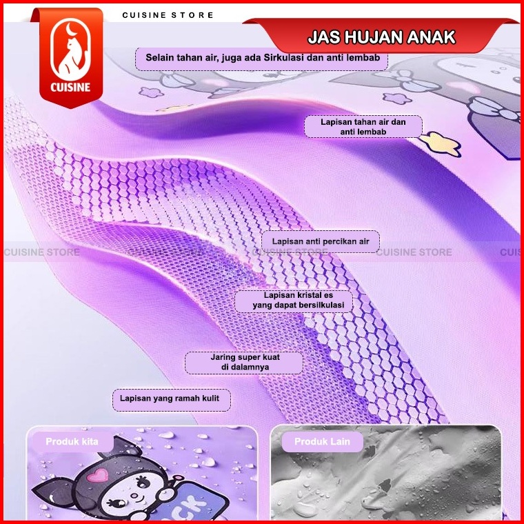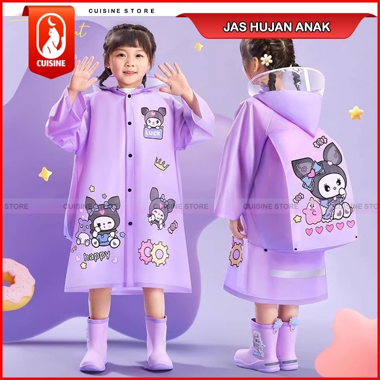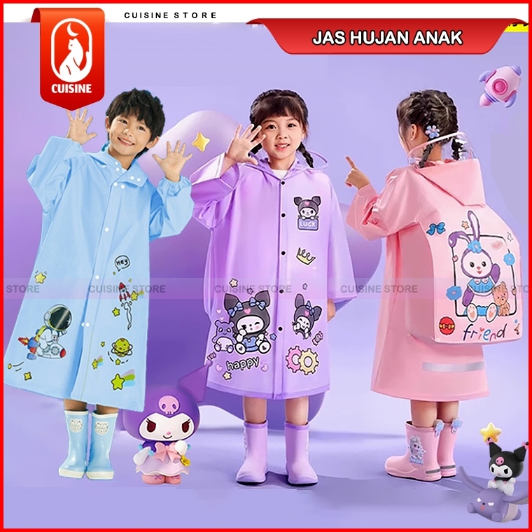 Cuisine Jas Hujan Anak Sekolah Dengan Hodie Topi Mantel Bahan Pvc Gambar Astronot Kuromi Tebal