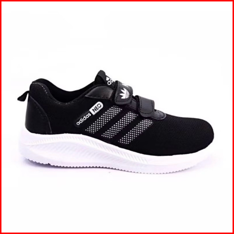 Sepatu Anak Sekolah Hitam Adidas Nike Bordil Usia 4-15 Ukuran 27-38 Velcro Tanpa Tali Terlaris Terbaik