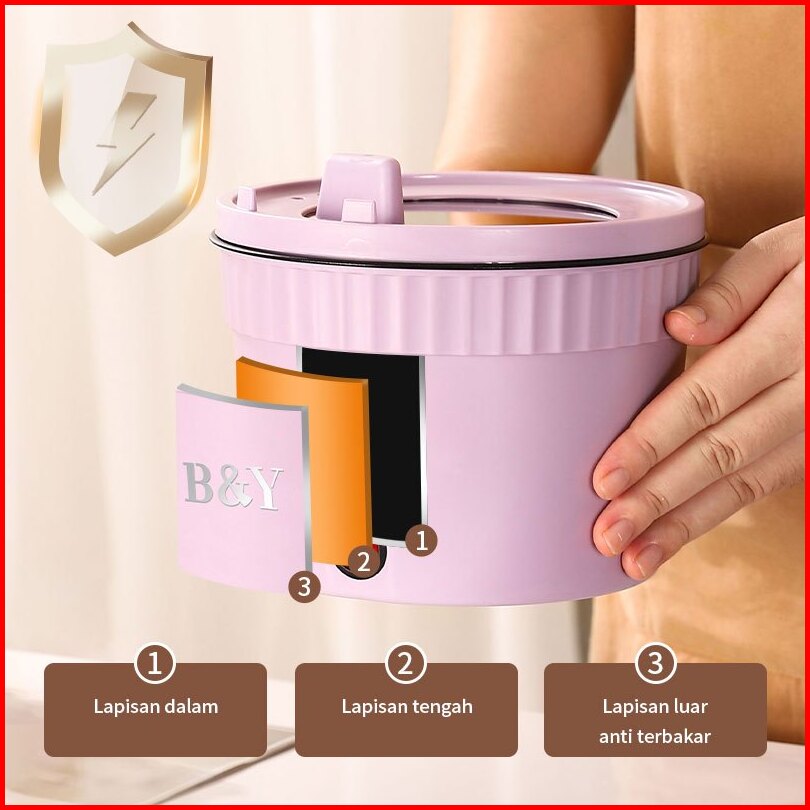 Panci Listrik Portable Serbaguna 16cm Anti Lengket Mini Rice Cooker Electric Cooking Pot Multifungsi