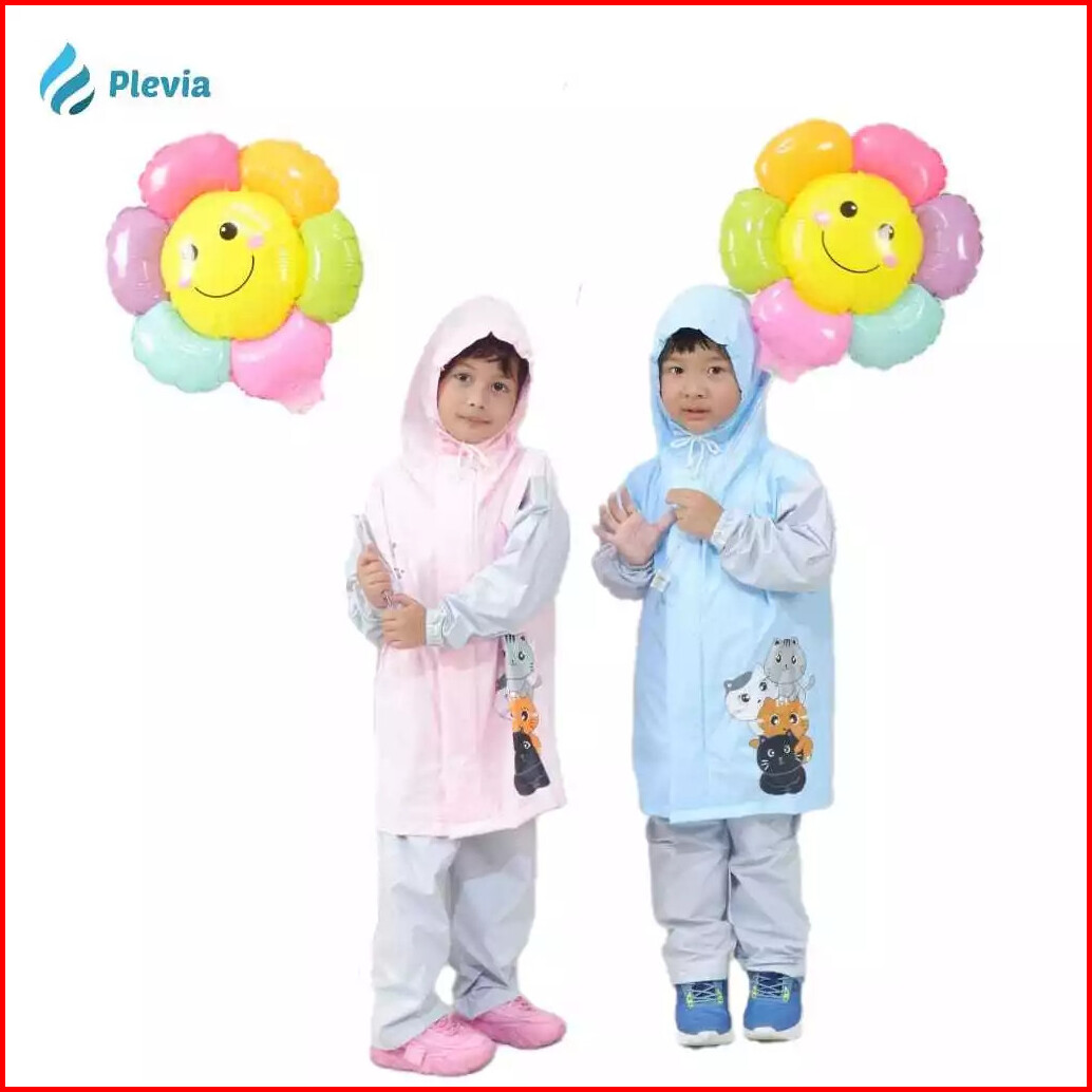Jas Hujan Anak Perempuan Usia 3-5 Tahun Plevia Neko Junior Setelan Jaket Celana Warna Pink Balita