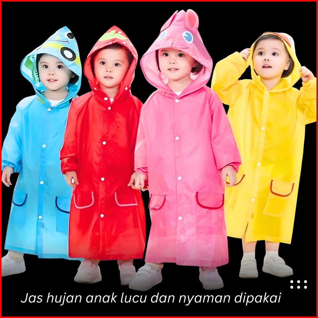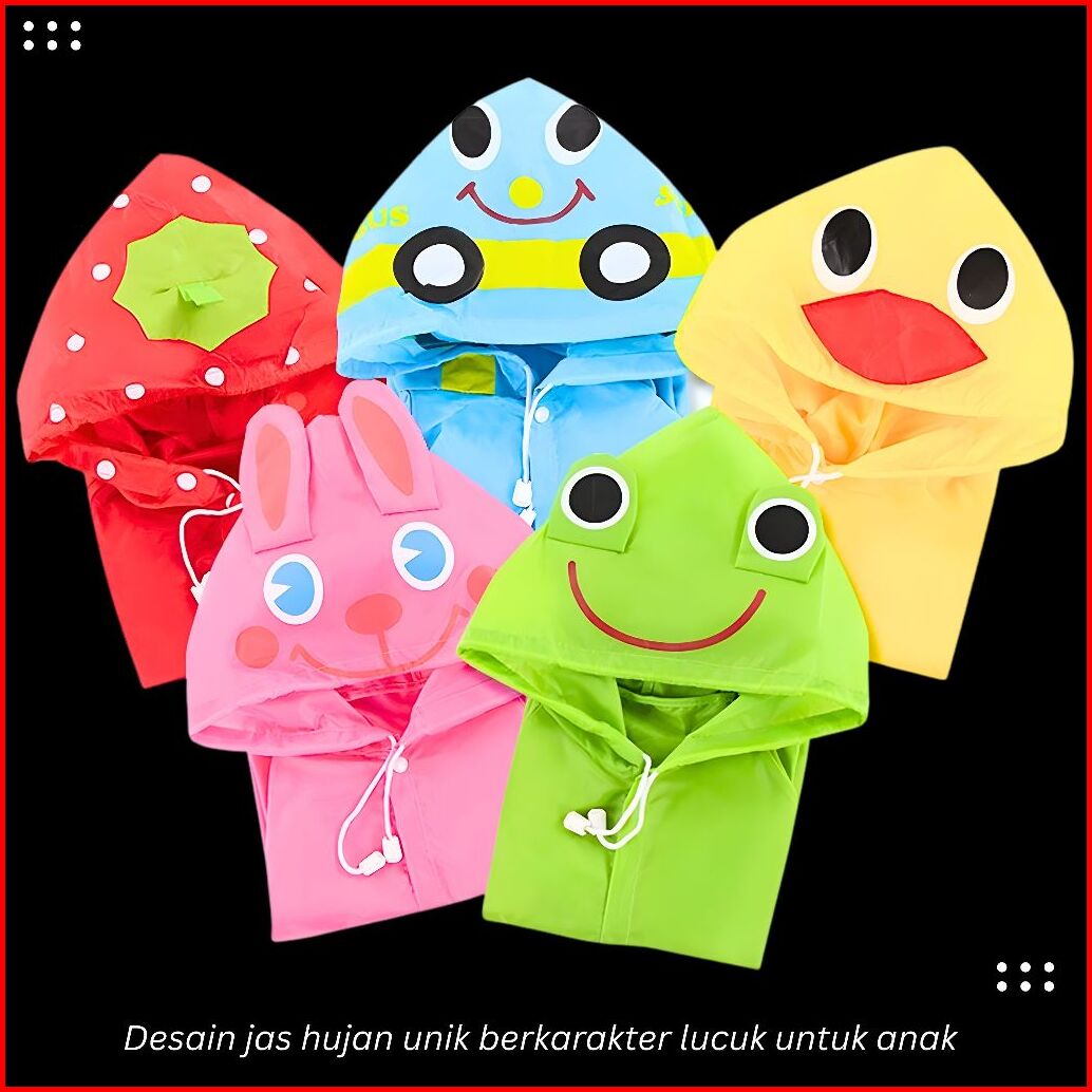 Onel Jas Hujan Anak Karakter 3 - 7 Tahun Motif Hewan Raincoat Balita Jubah Hoodie Lengan Panjang