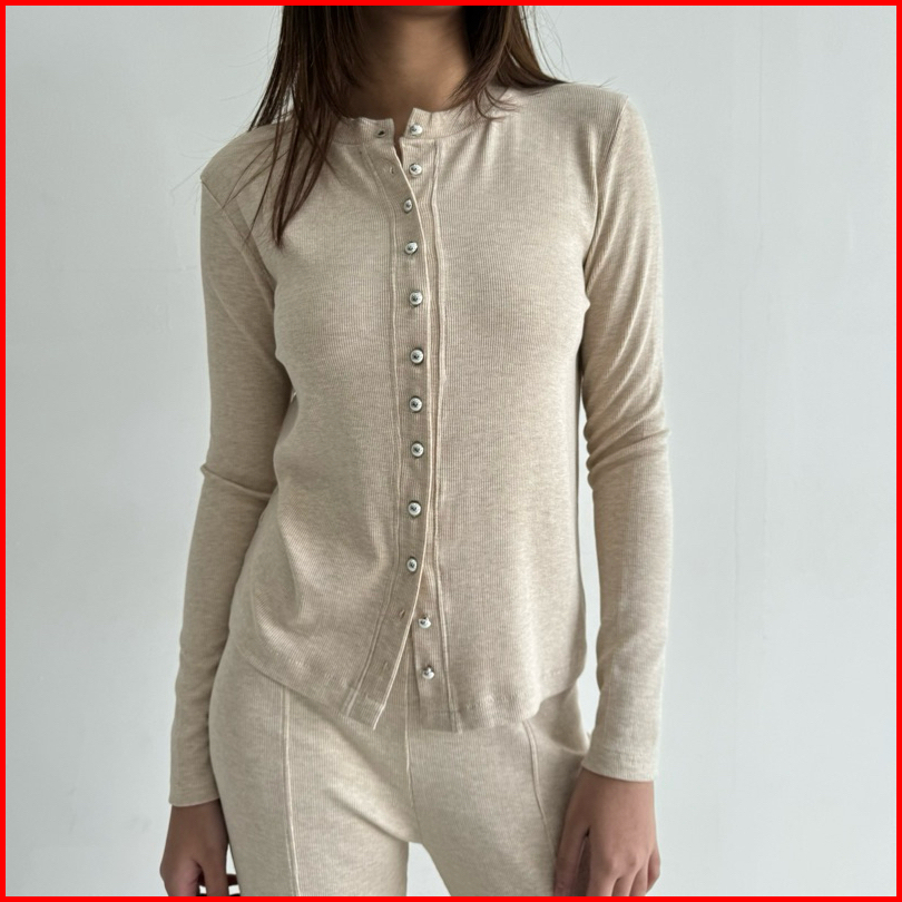 Top Korean Basic Lengan Panjang Atasan Wanita Full Kancing Knit Long Sleeve Kaia Top - Amora
