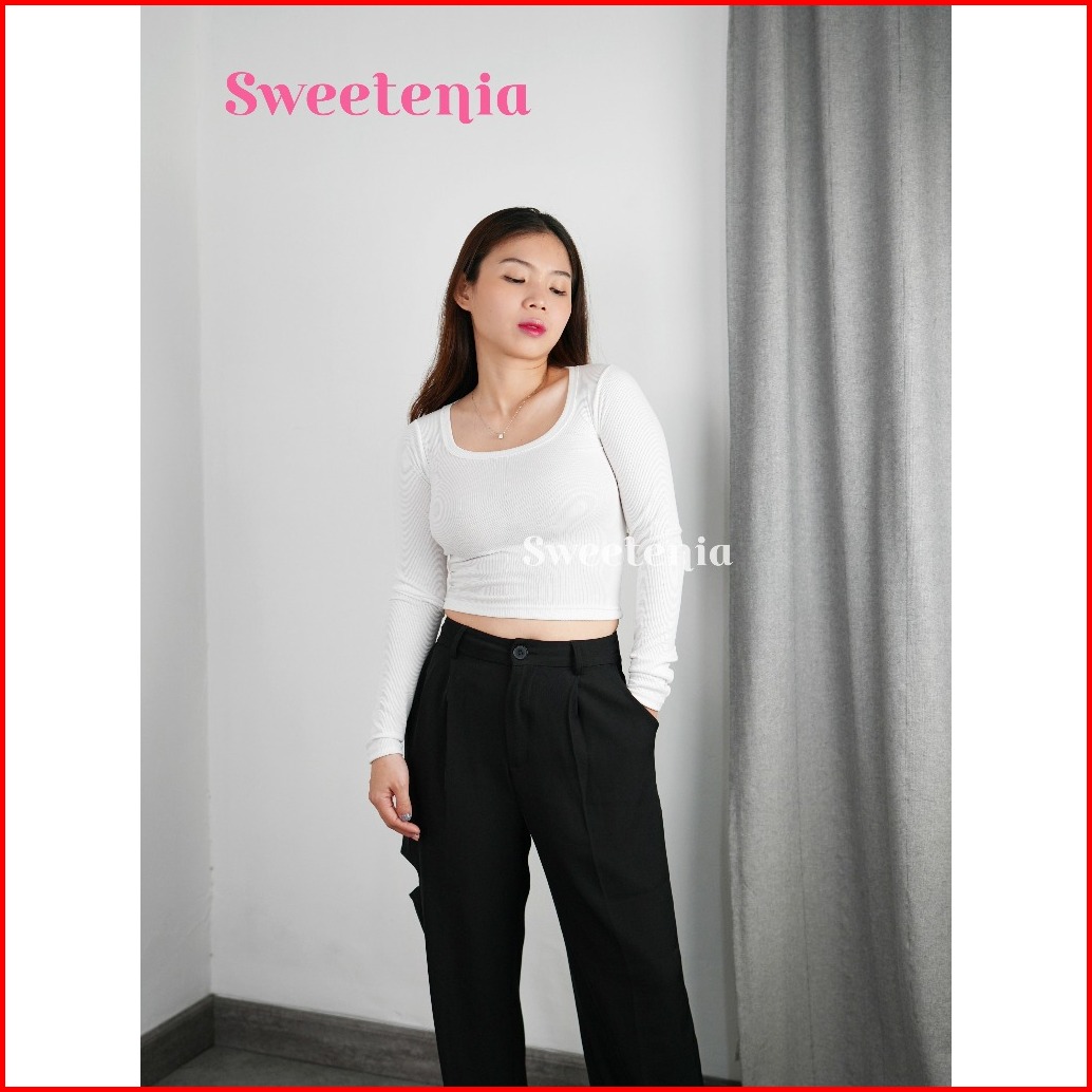 Sweetenia - Mars Top Atasan Rib Knit Wanita Korean Top Baju Wanita Lengan Panjang