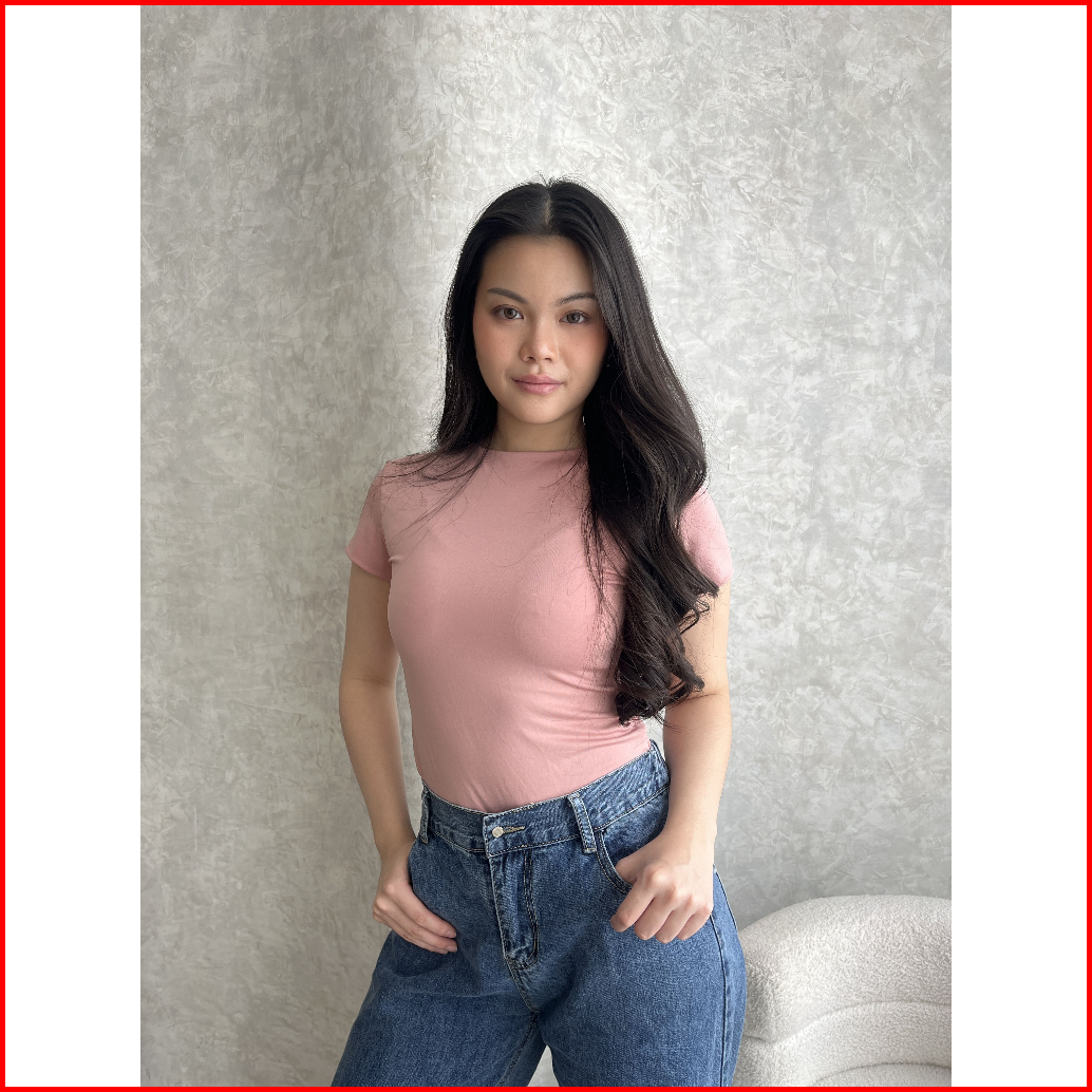 Lassmee Gale Baju Atasan Wanita Bodysuit Basic Polos Lengan Pendek Kaos Jersey Spandex