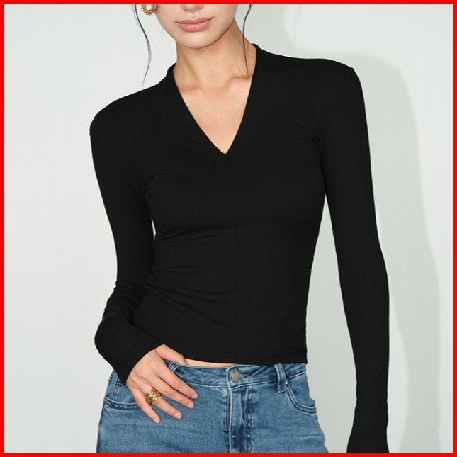 Women T Shirt V-neck Long Sleeve Slim Fit 3359 S M L Xl