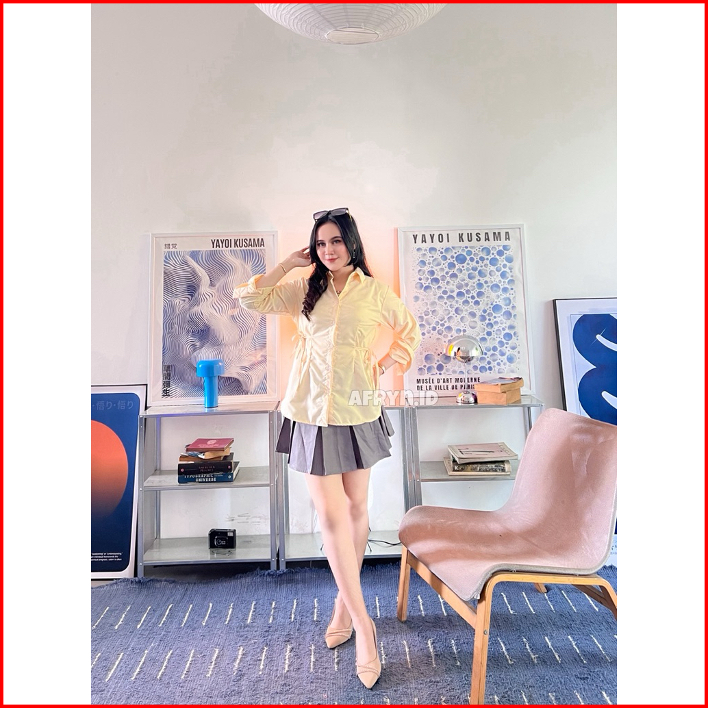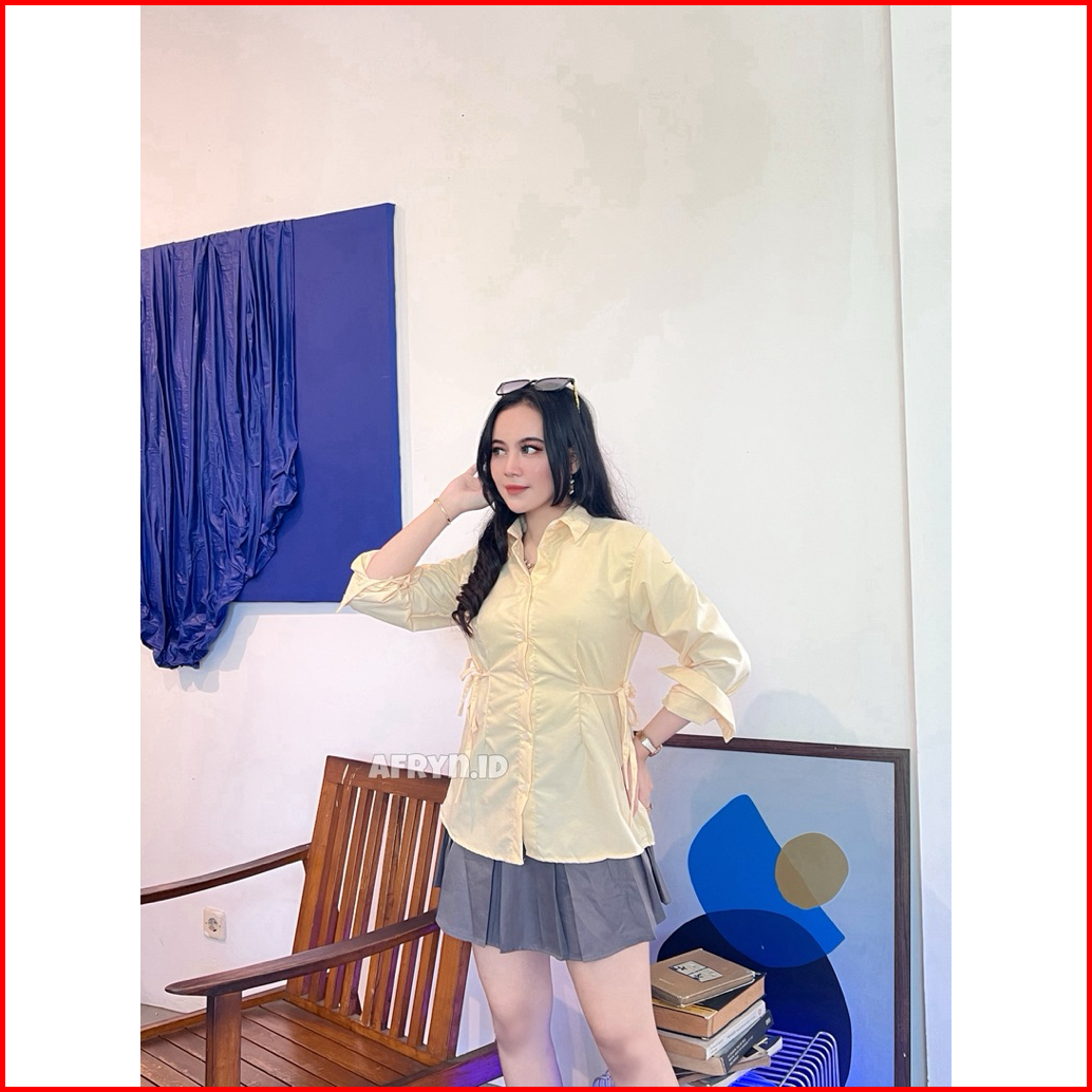Kemeja Long Sleeve Tali Samping Press Body-kemeja Wanita
