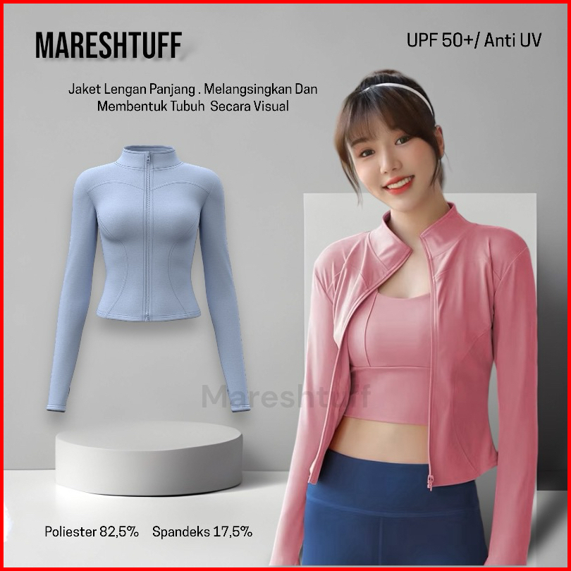 Mareshtuff Jaket Olahraga Wanita Lengan Panjang Sport Yoga Running Anti Uv Upf 50 Fitness Ngepas Body Elastis Press Body