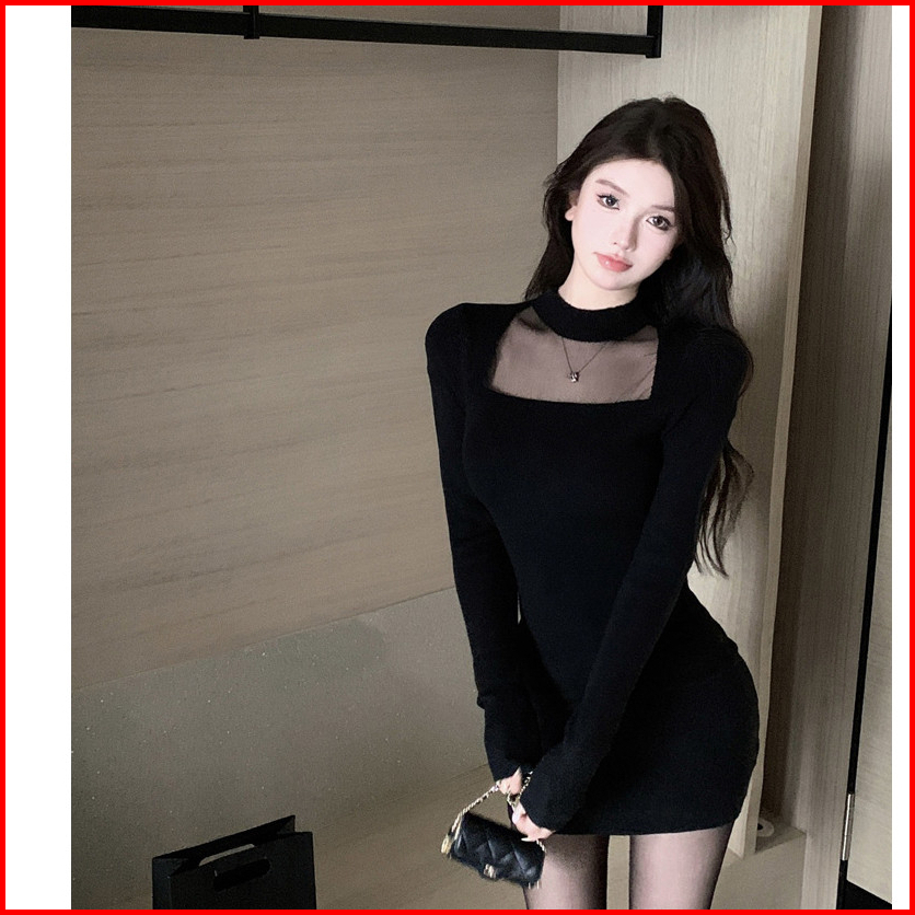 Emita Bloom Baju Mini Dress Hitam Lengan Panjang Press Body Wanita Lace Kekinian Korean Style Aesthetic Gaun Pesta Konda