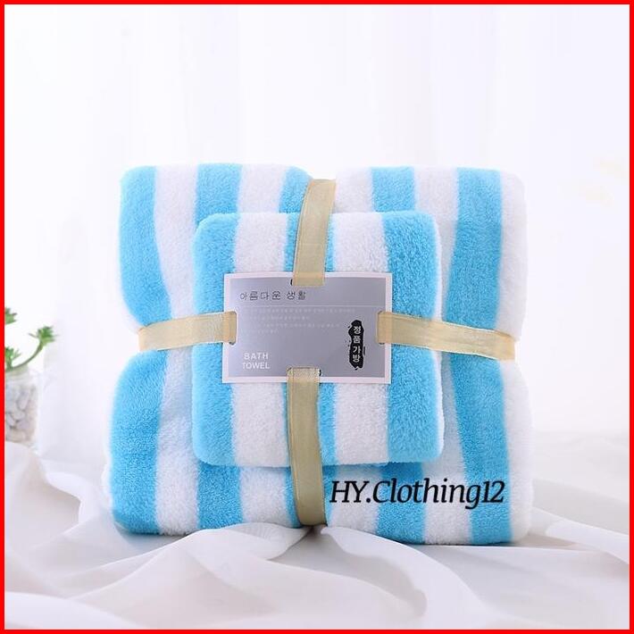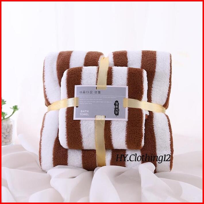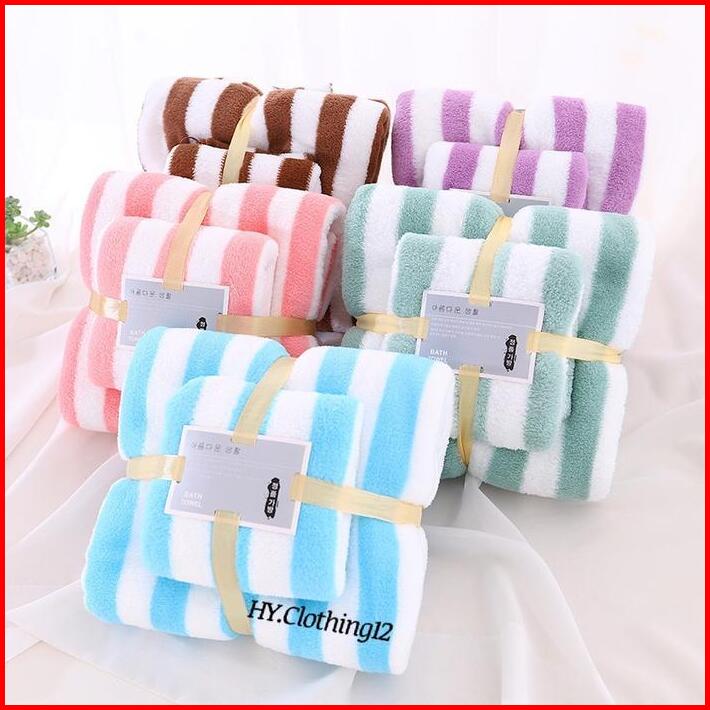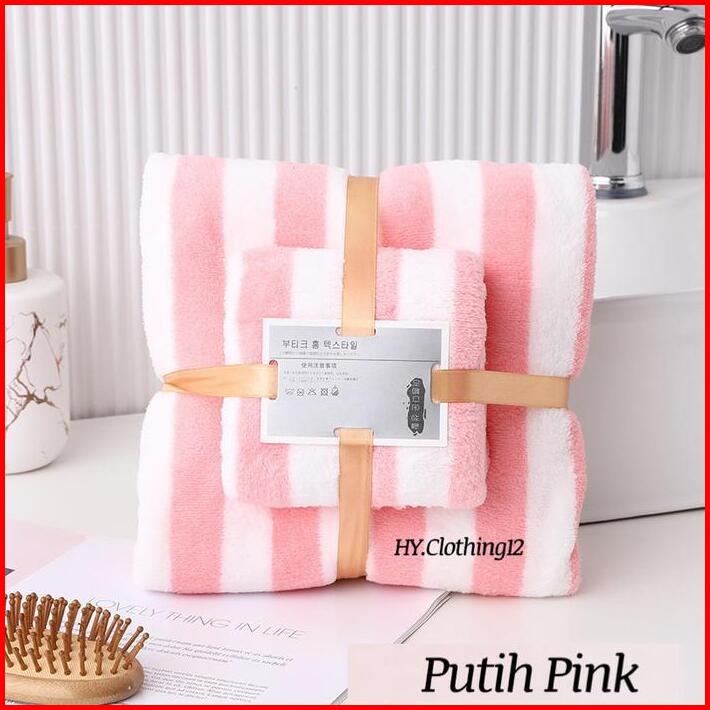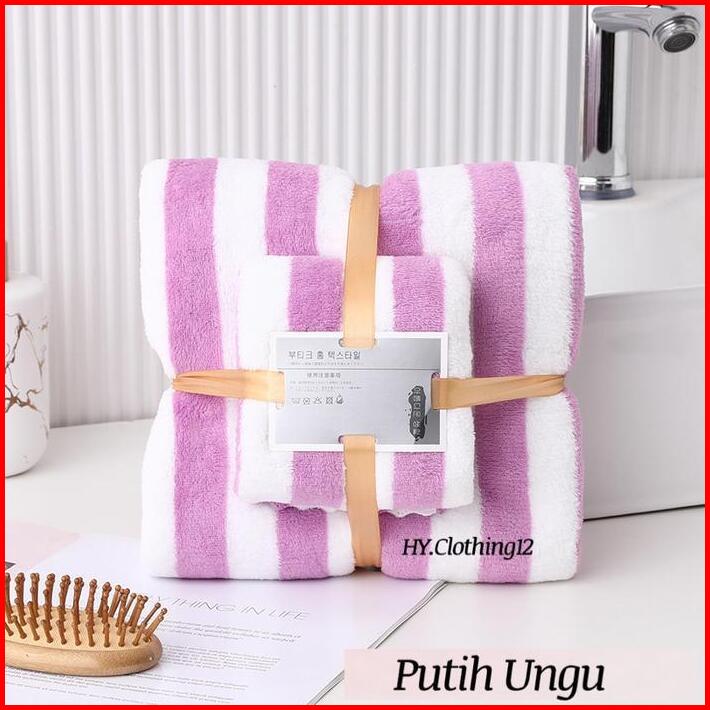 News Handuk Mandi Set 2in1 Handuk Mandi Wajah Motif Garis Handuk Microfiber Handuk Mandi Dewasa