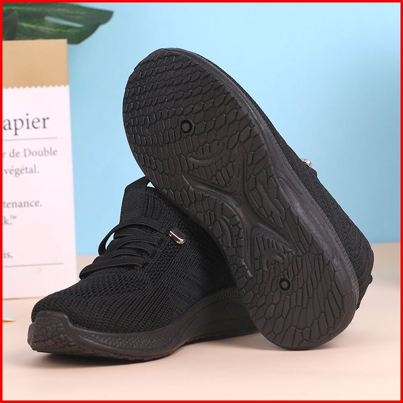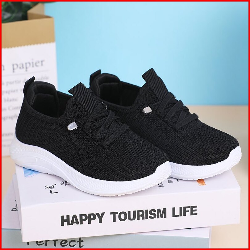 Collin Sepatu Sekolah Anak Hitam Slip On Rajut Sneakers Tali Mati Alas Hitam Putih - Tb331-k T