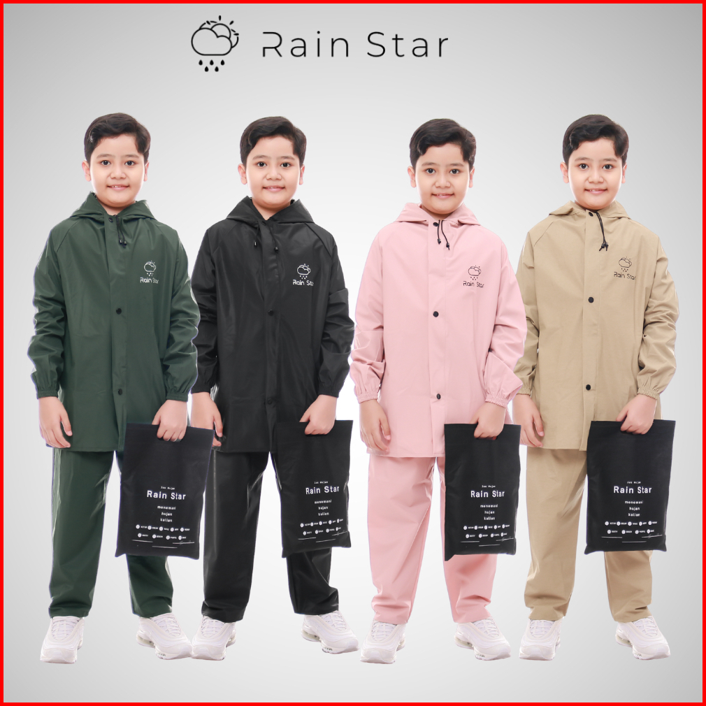 Jas Hujan Setelan Anak Laki Laki Perempuan Tebal Dan Kuat Elastis Rain Star