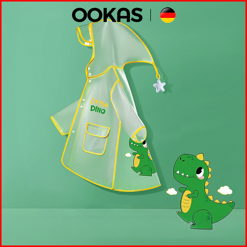Ookas Jas Hujan Anak Raincoat Terusan Bahan Eva Transparan Hoodie Lembut Pinggiran Diperpanjang