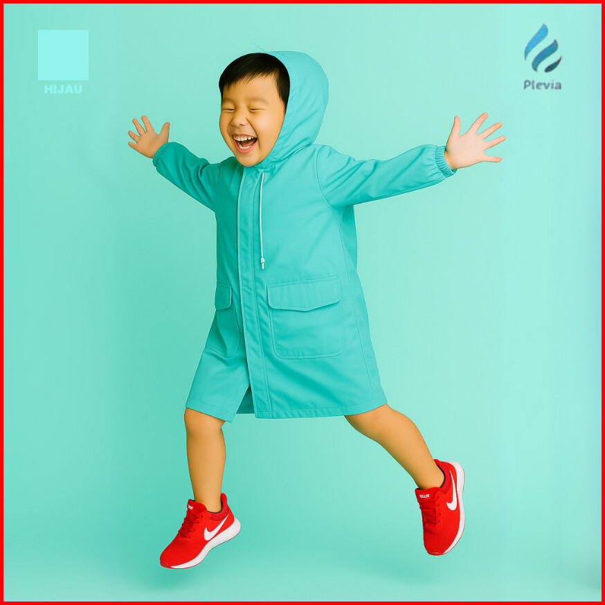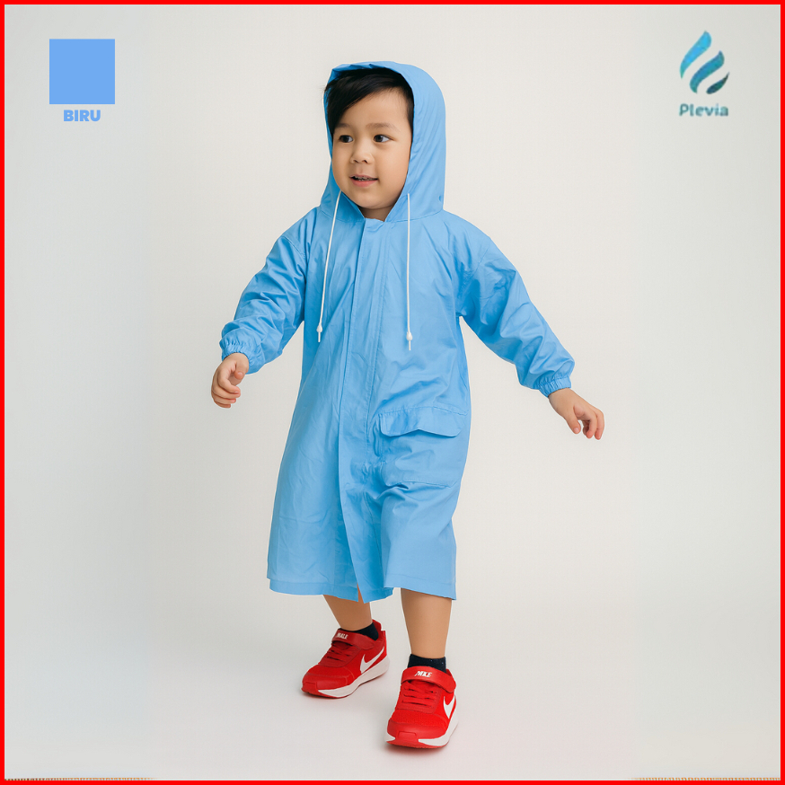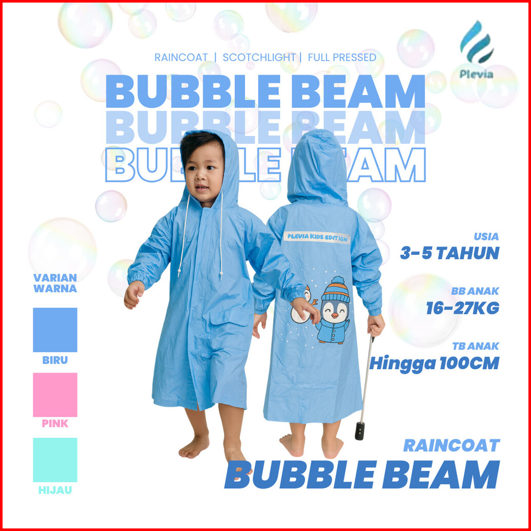 Jas Hujan Anak Usia 3-5 Tahun Plevia Bubble Beam Raincoat Warna Biru Pink Hijau Balita