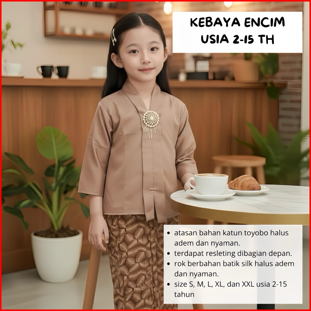 Kebaya Encim Polos Anak 1-14th Kebaya Kartini Katun Polos Rok