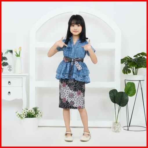 Setelan Kebaya Anak Brukat Batik Modern Freya Kid Kebaya Kutu Baru Anak Pesta Kondangan