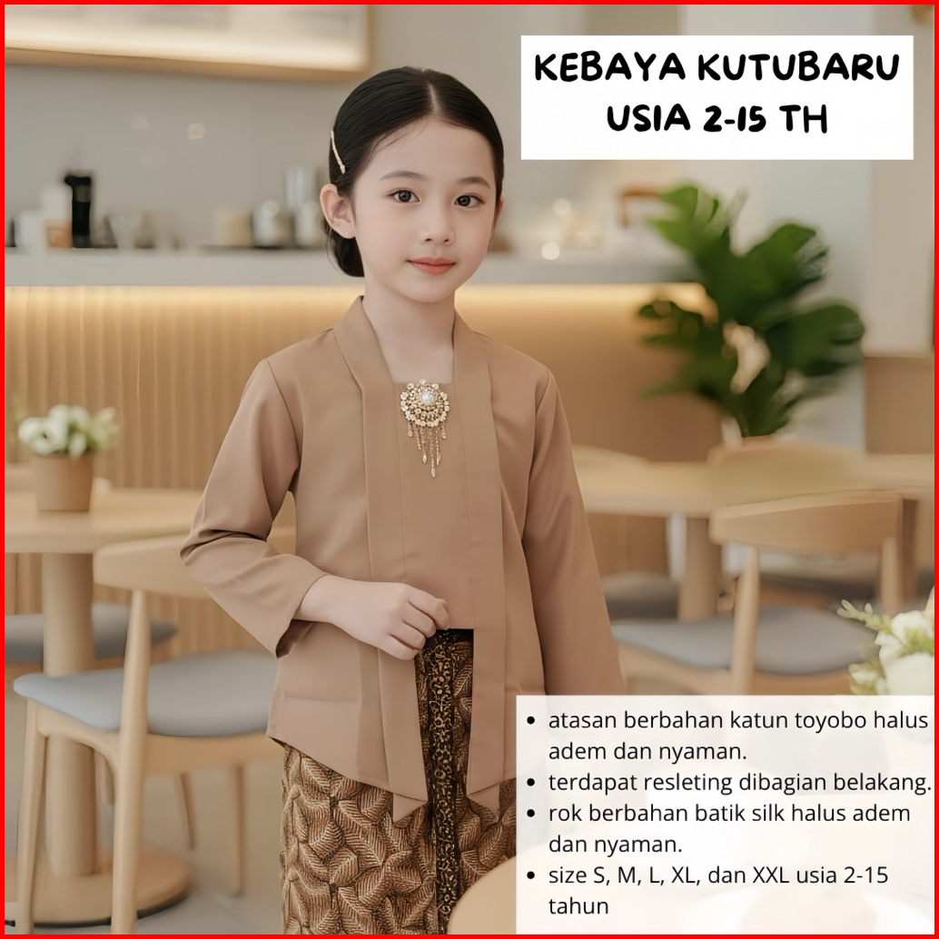 Kebaya Anak Polos Kutubaru Usia 2-14th Kebaya Kutubaru Batik
