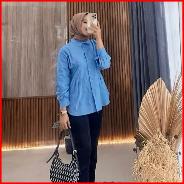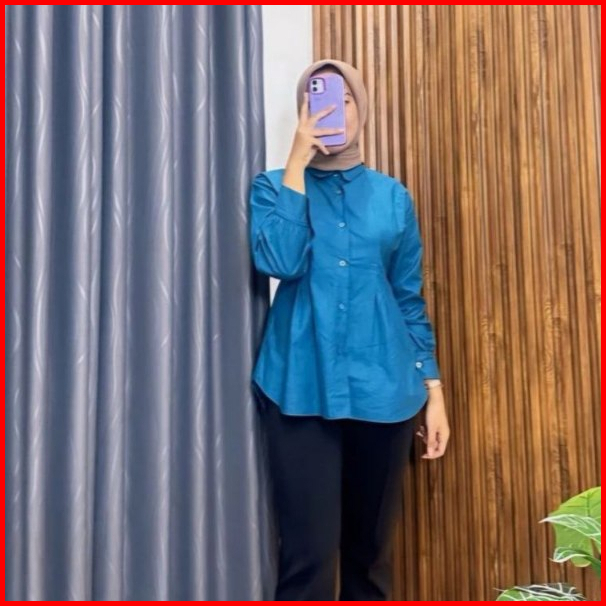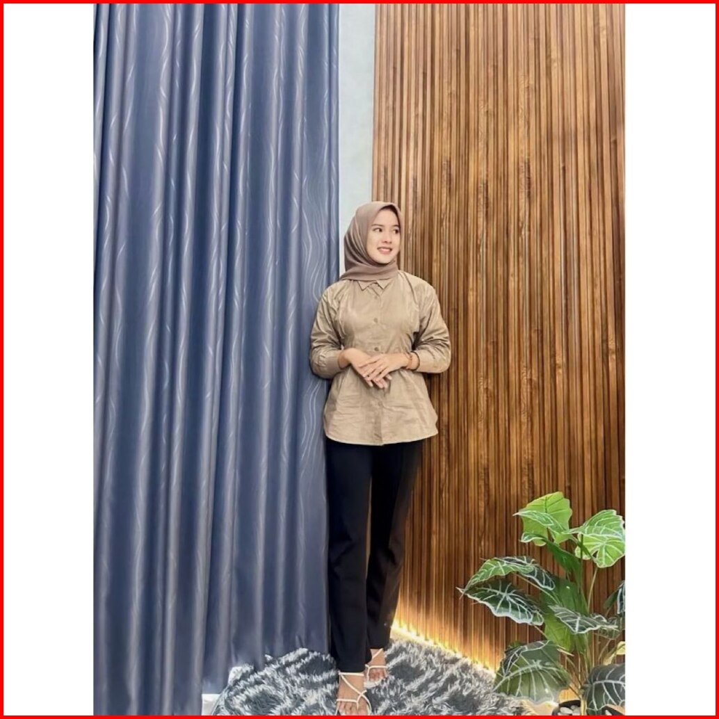 Atasan Luna Top Long Sleeve Kemeja Wanita Katun Premium