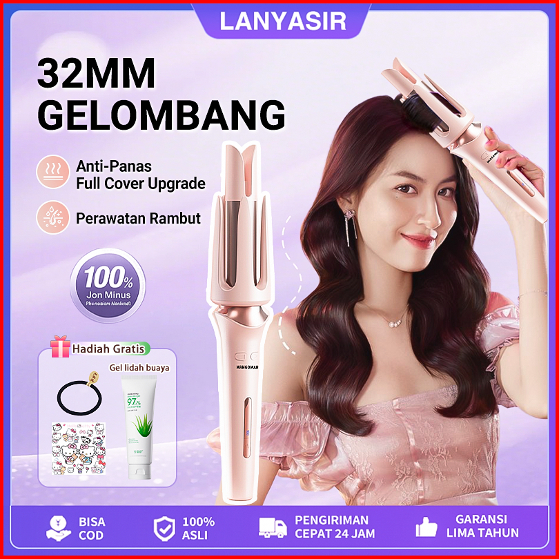Mangoman Catokan Curly Otomatis 32mm Curly Catokan Keramik Otomatis Hair Styler 3 Pengaturan Tampilan Led Desain Gaya Ra