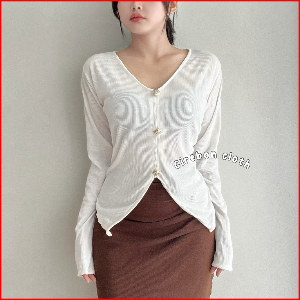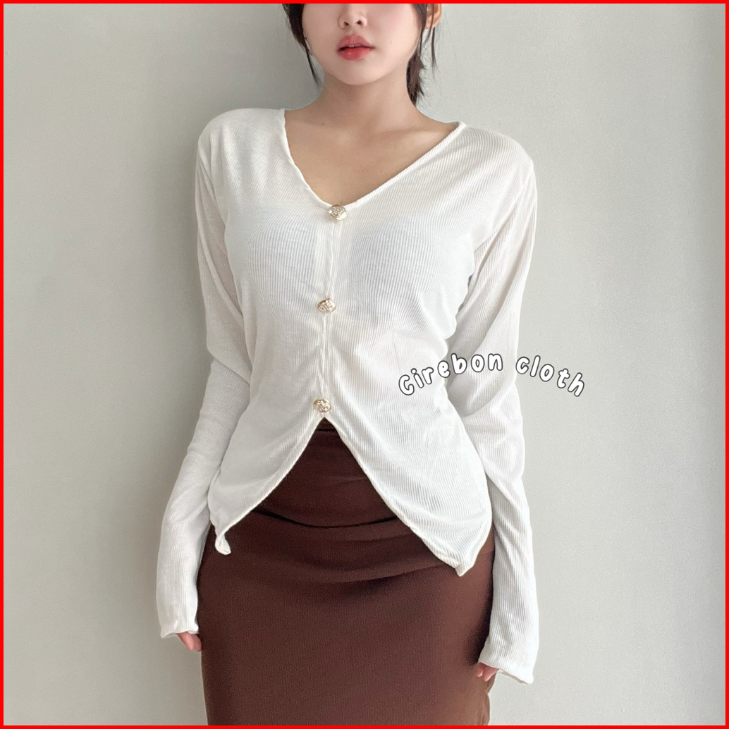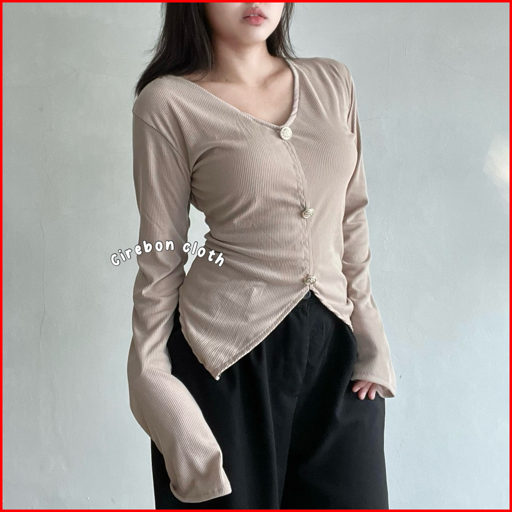 Kiyana Cirebon Cloth - Jodie Top Curve Button Button Long Sleeve Atasan Wanita Asimetris Atasan Wanita Casual
