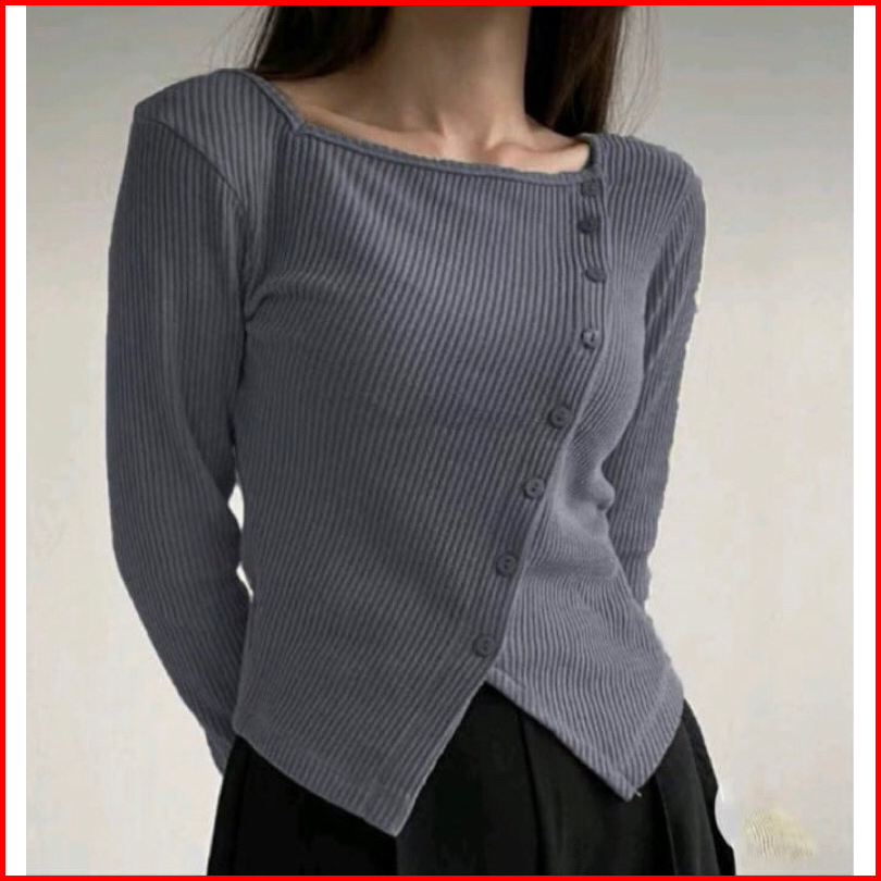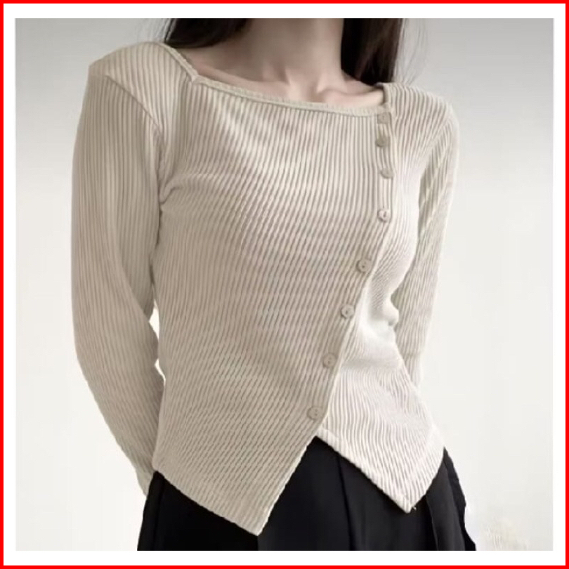 Knit Selly Blouse Korean Knit Rib Atasan Wanita Kekinian