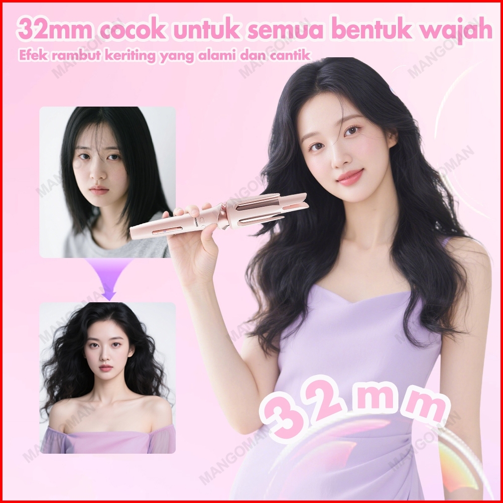 Mangoman Catokan Curly Otomatis 32mm Ceramics Curly Catokan Keriting With Led 3 Pengaturan Suhu Tampilan Suhu 5000w Nega