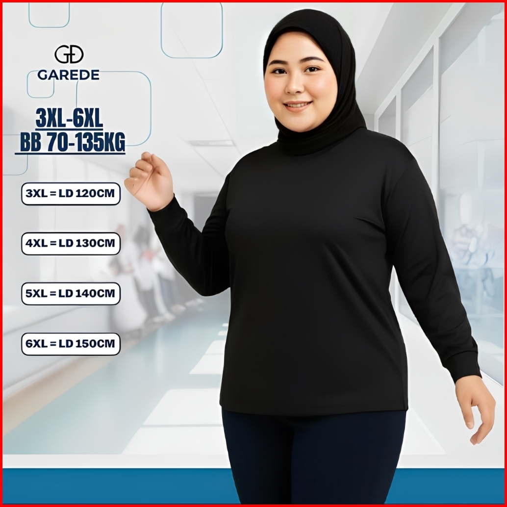 Garede - Kaos Oversize Wanita Lengan Panjang Polos Premium Basic Jumbo Ld 120 130 140 150