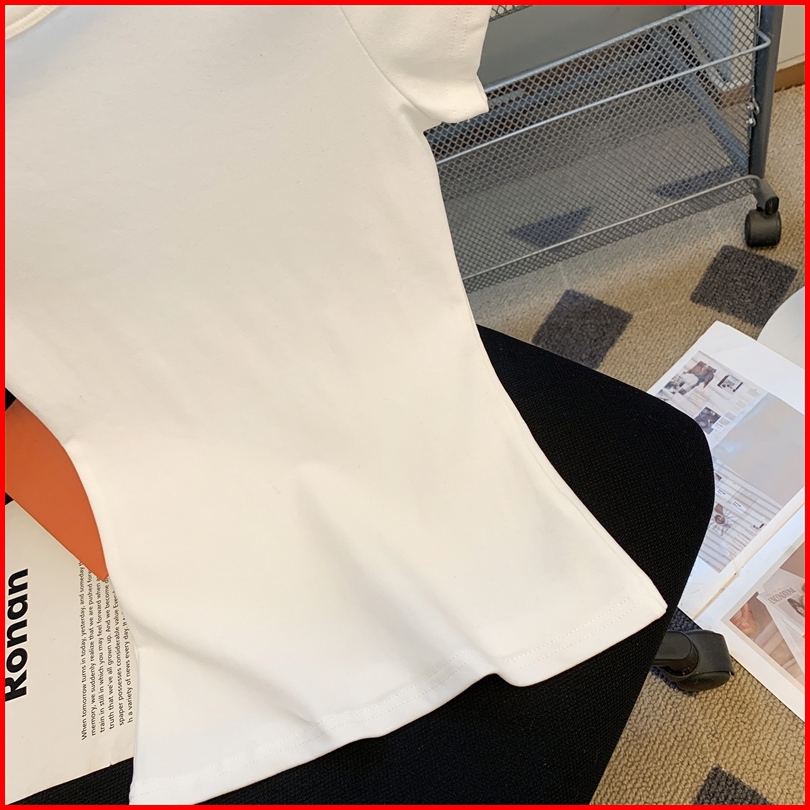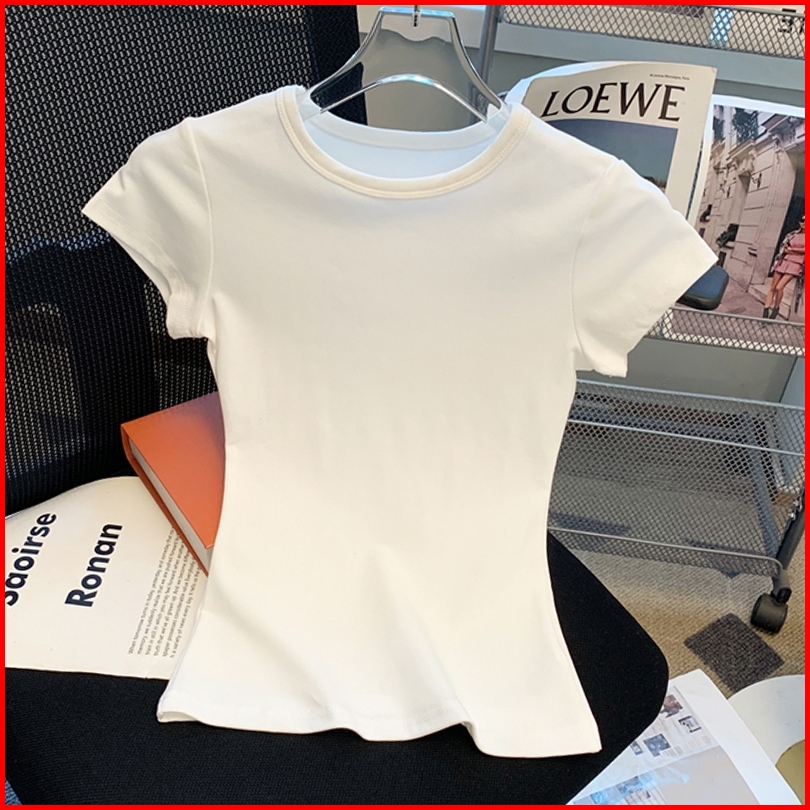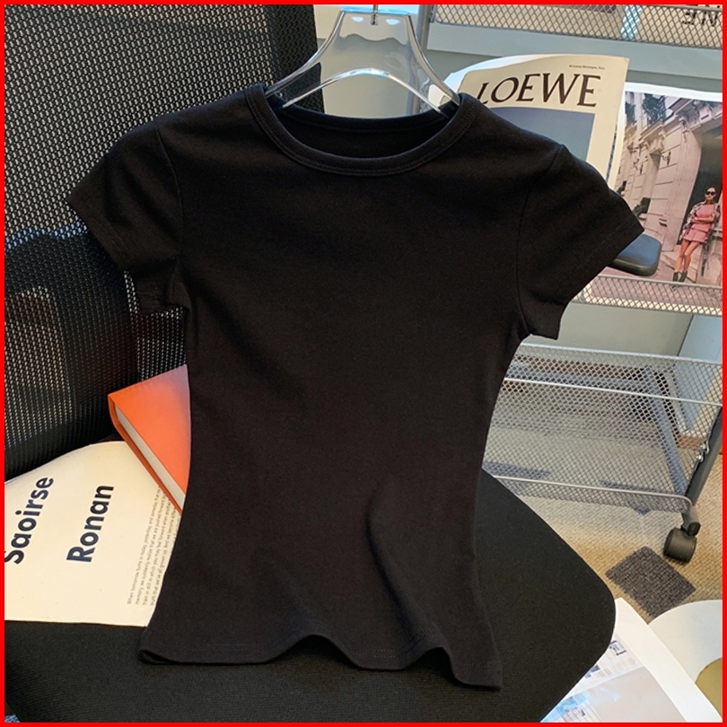 Kaus Pendek Leher Bulat Bergaris Warna Polos Atasan Kaus Ketat Elastis Seksi Fashion Wanita Gaya Korea