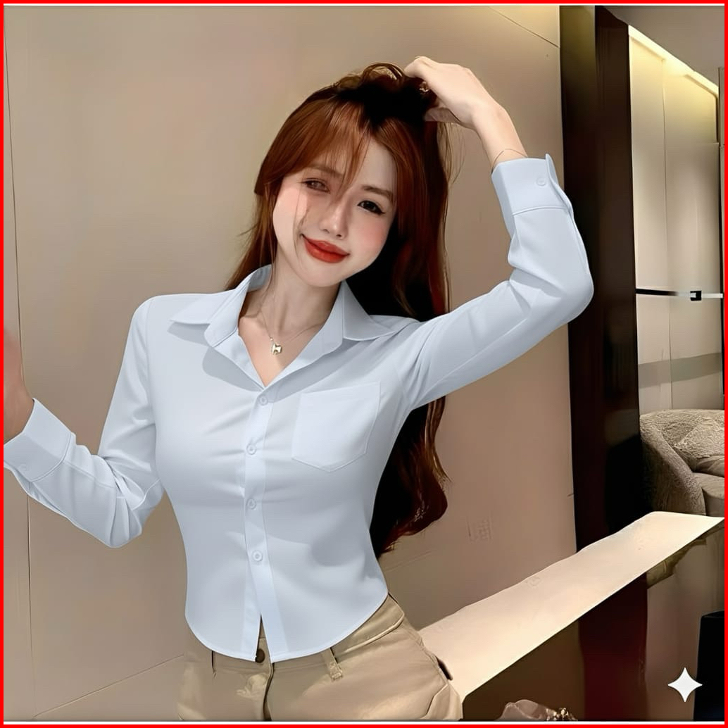 Kemeja Crotop Slimfit Wanita Pres Body Lengan Panjang Korea Style