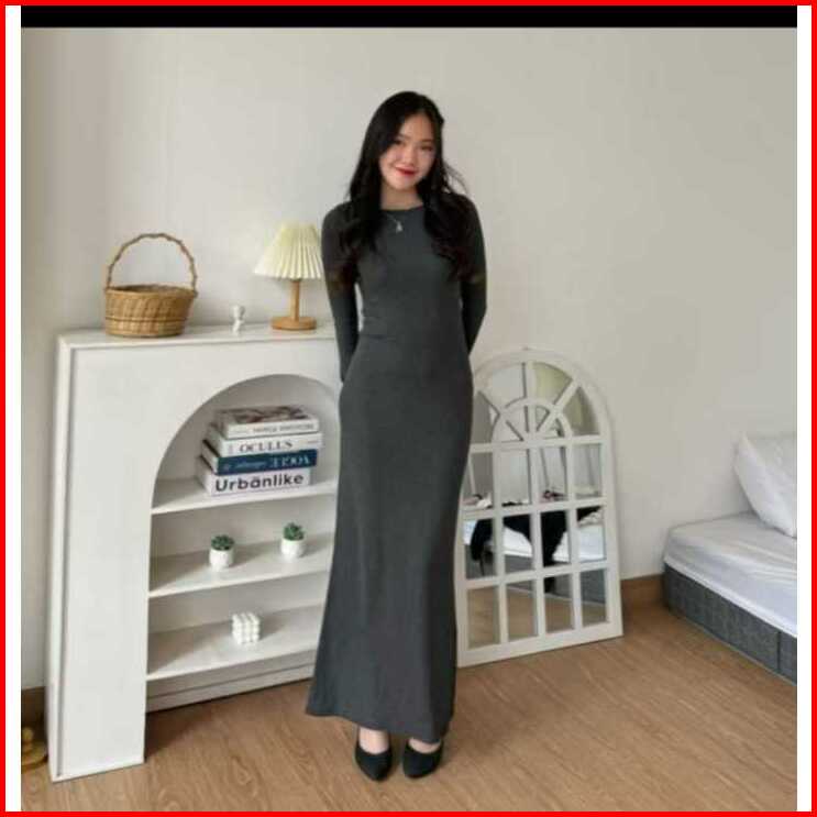 Long Slave Dress Wanita Kekinian Korean Style Inner Dress Press Body Lengan Panjang Daster Kekinian Lexy Knit Rib Terbar
