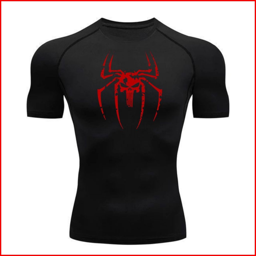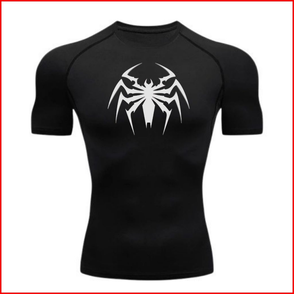 Kaos Olahraga Compression The-spider Gym Fitnes Baju Kompresi Raglan Sport Lengan Pendek Pria Wanita Kaos Ketat Pres Bod