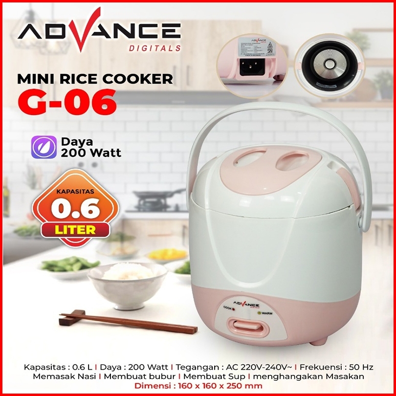 Advance G06 Rice Cooker Magic Com Mini 0.6 Liter Portable Travel Anti Lengket Penanak Nasi