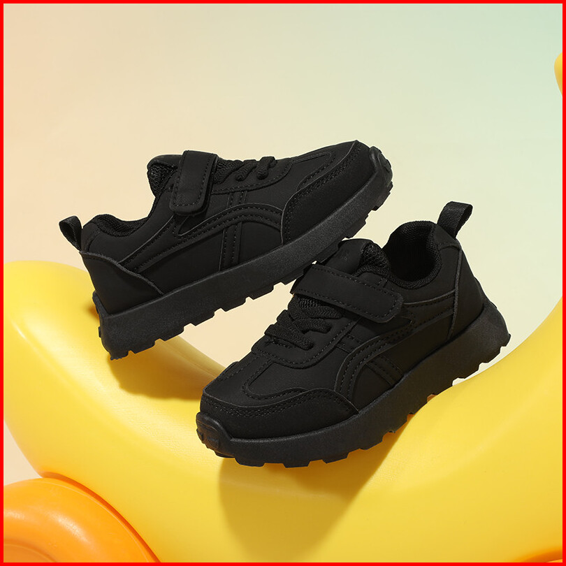 Bomb Bear Style Gajian Sale 12.12 Sepatu Premium Sekolah Anak Cewe Cowo Ynss2209 Hitam Velcro 3-8 Tahun