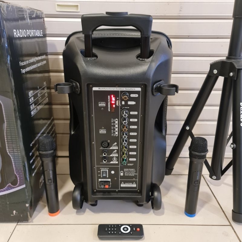 Speaker Portable Aiwa 12 Inch Bonus 2 mic Wireless dan STENDING