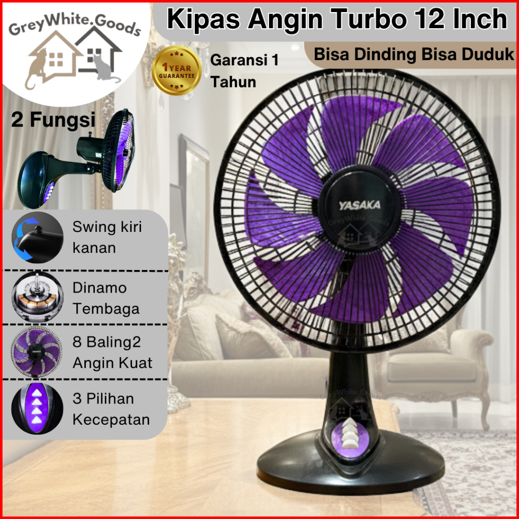 Kipas Duduk Dinding 12 Inch Turbo 2in1 8 Baling 3 Kecepatan Bergaransi