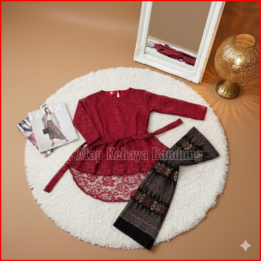 Akb3 Setelan Kebaya Anak Perempuan Brokat Aurora Model Rok Plisket Cocok Dipakai Usia 4-14 Tahun