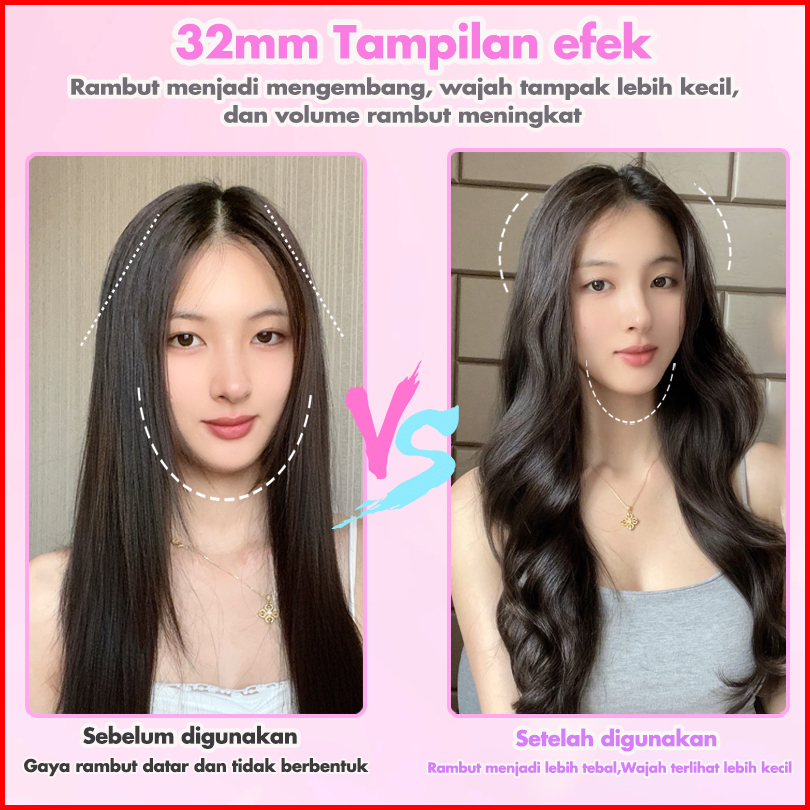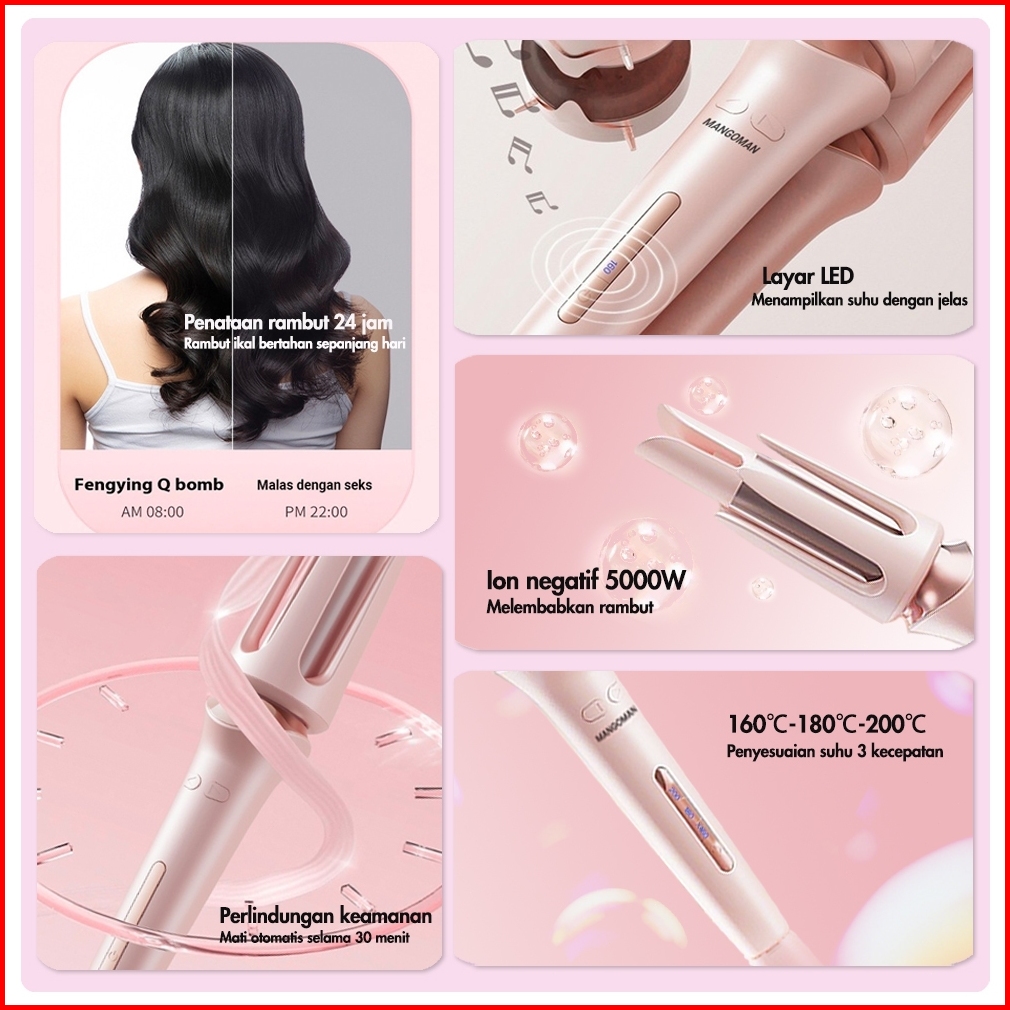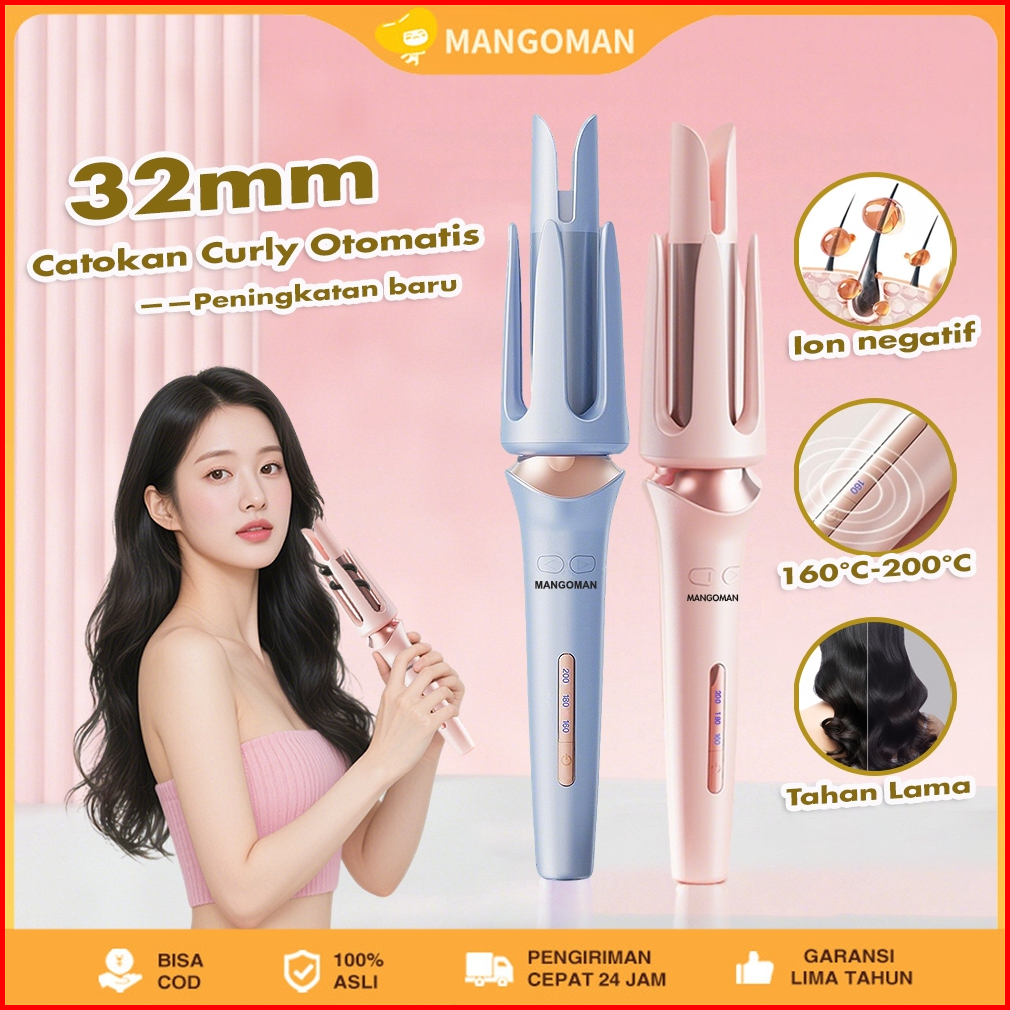 Mangoman Catokan Curly Otomatis 32mm Ceramics Curly Catokan Keriting Tampilan Suhu Led Pemanasan Cepat Catokan Curly Den
