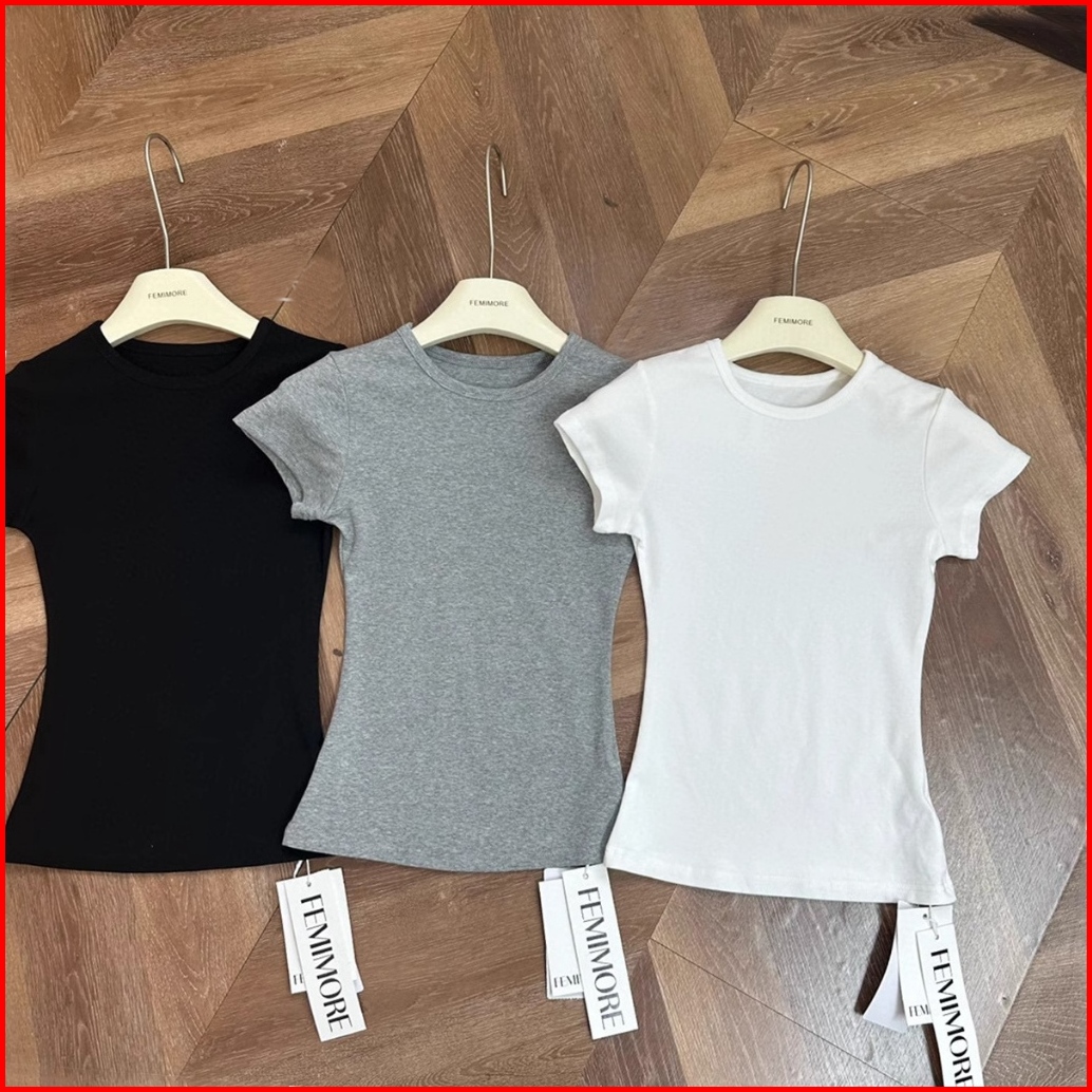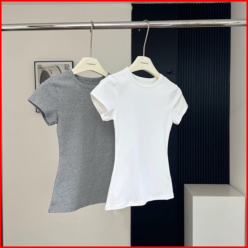 Kaos Leher Bulat Berusuk Retro Kaos Ketat Stretch Fashion Korea Atasan Wanita Terbaru