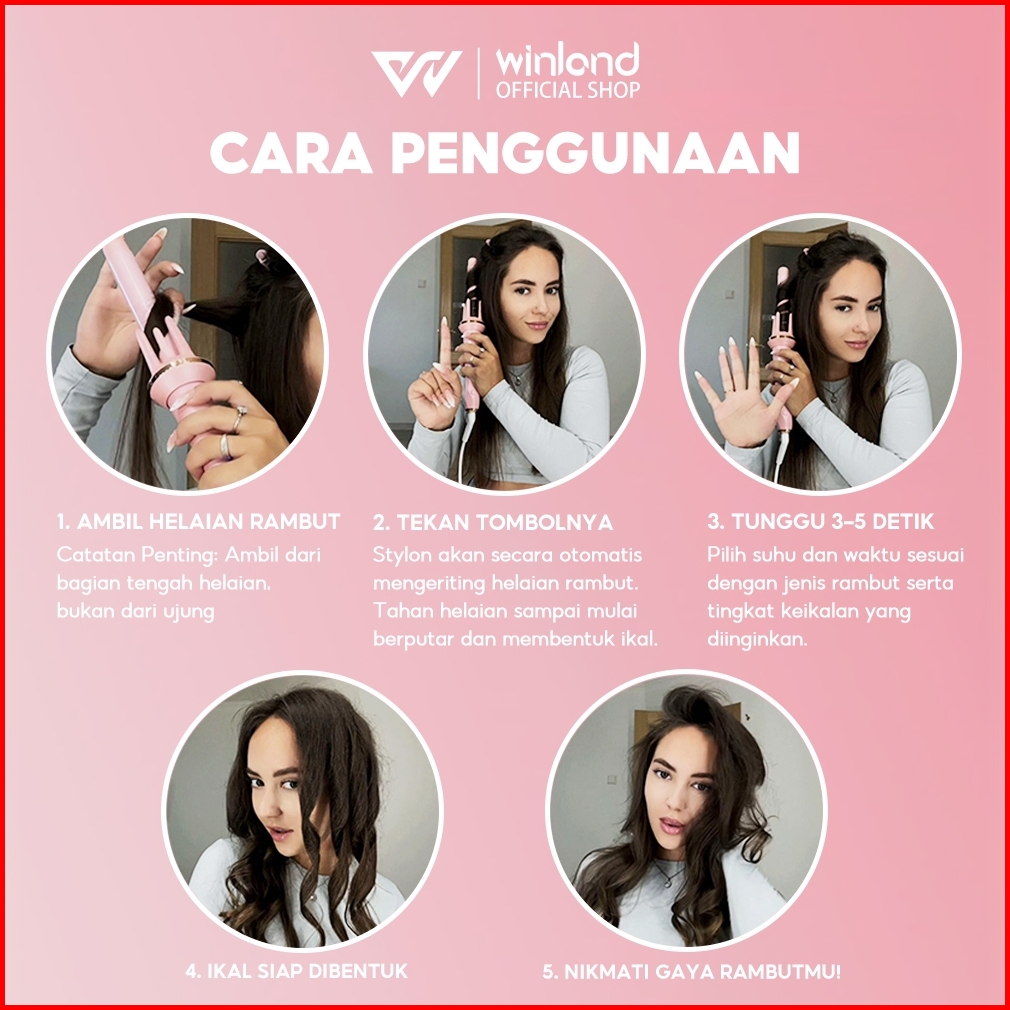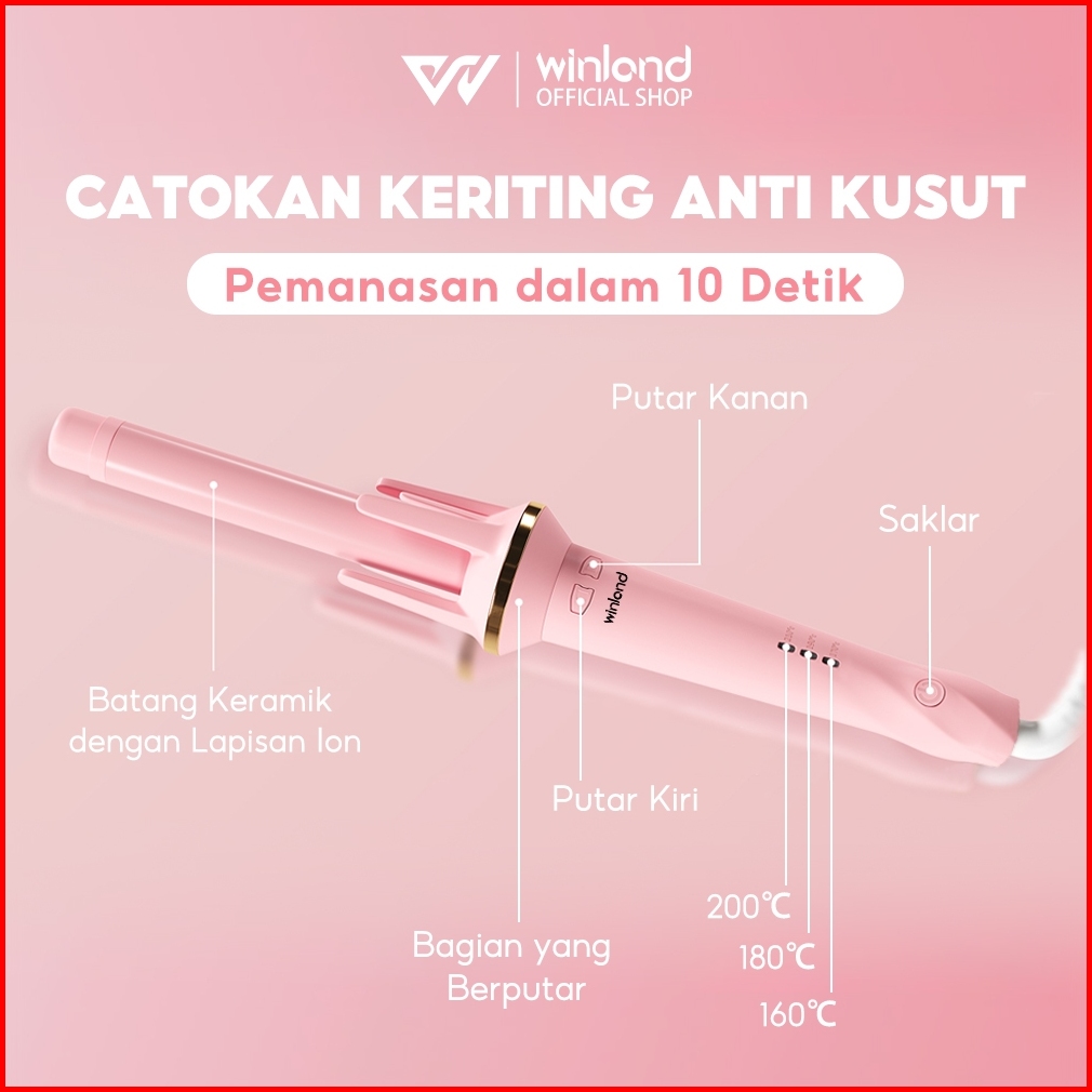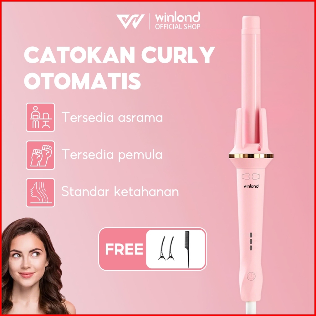Winland Catokan Curly Otomatis Libra 28mm Ceramics Curyrambut Alat Kriting Rambut Tahan Lama Pink Libra
