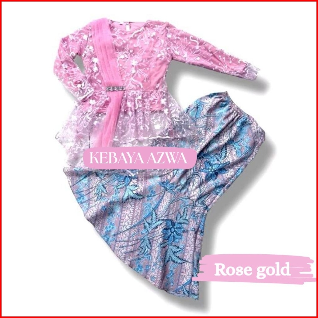Setelan Baju Set Kebaya Anak Perempuan Modern Rok Duyung Atasan Tile Mutiara Dilengkapi Selendang Lengan Panjang Fashion