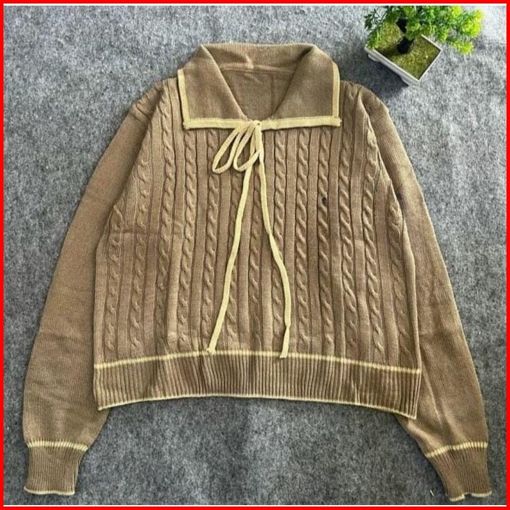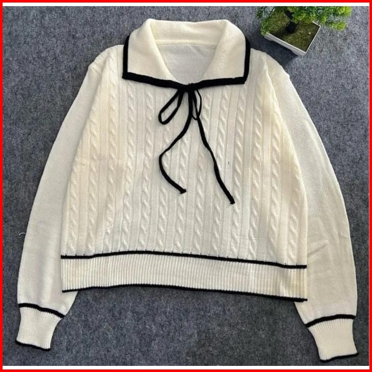 Kirana Bluse Rajut Motif Pita Atasan Rajut Wanita Berkerah Korea Style