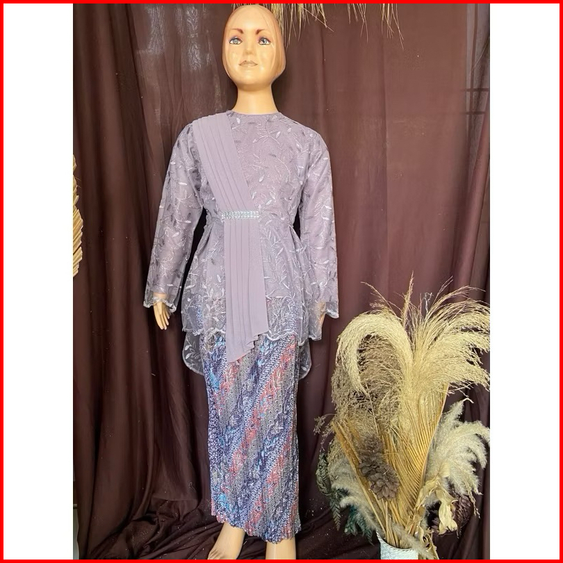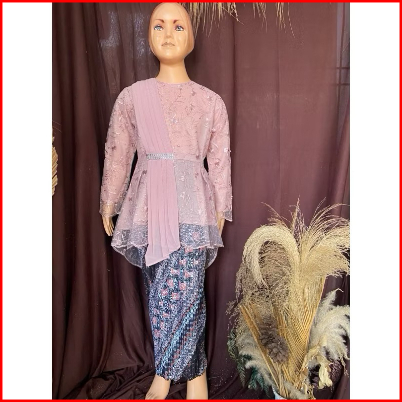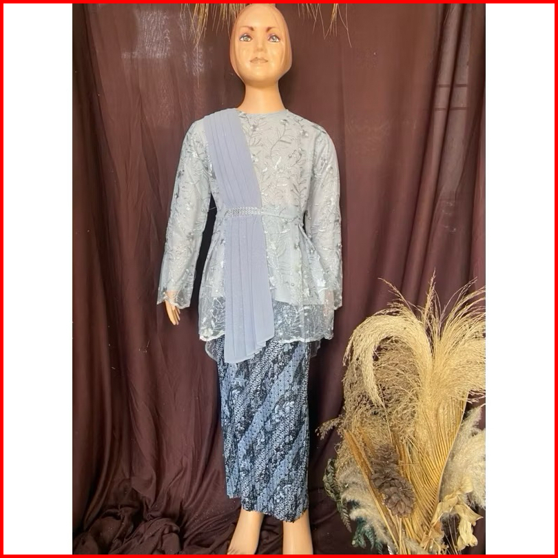 Setelan Kebaya Aurora Selendang Anak Tanggung Umur 5 - 12 Tahun Rok Prisket Batik - Kebaya Anak Kartini - Kebaya Anak Mo