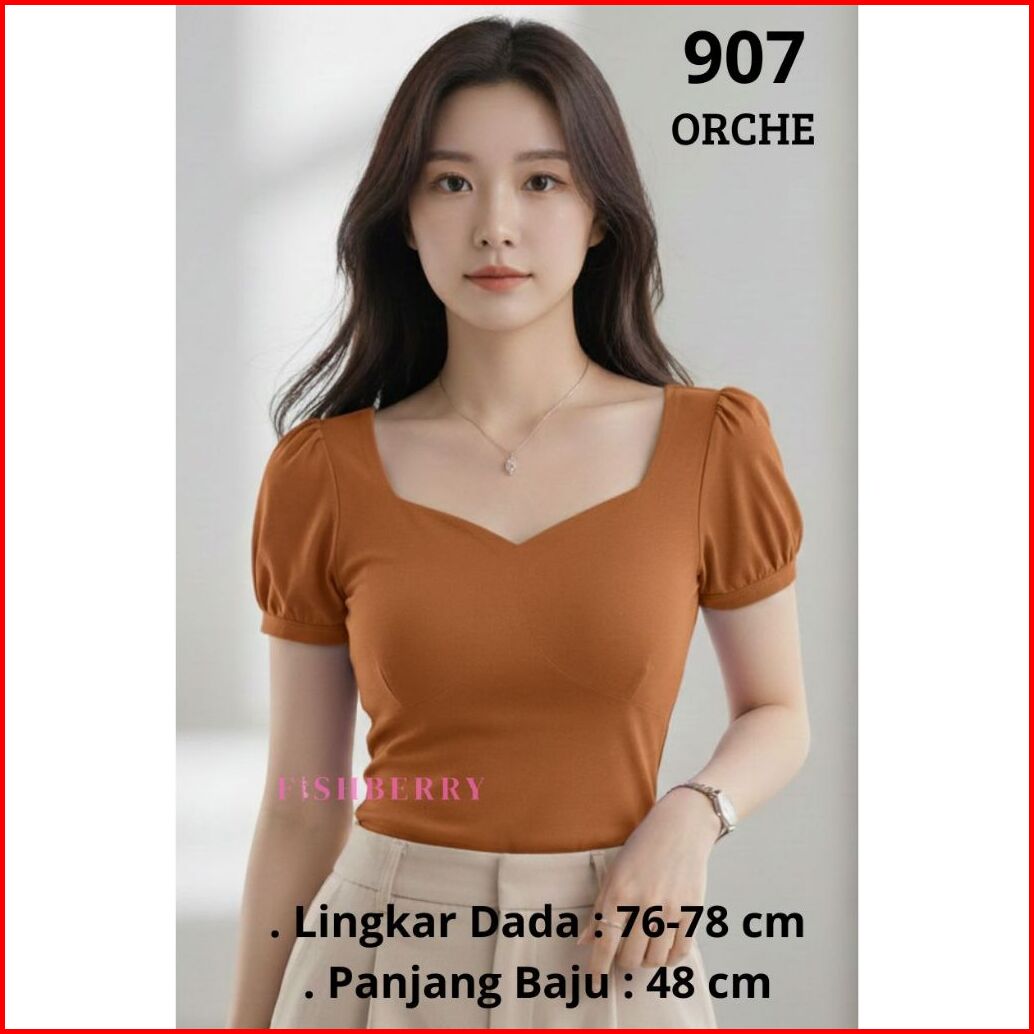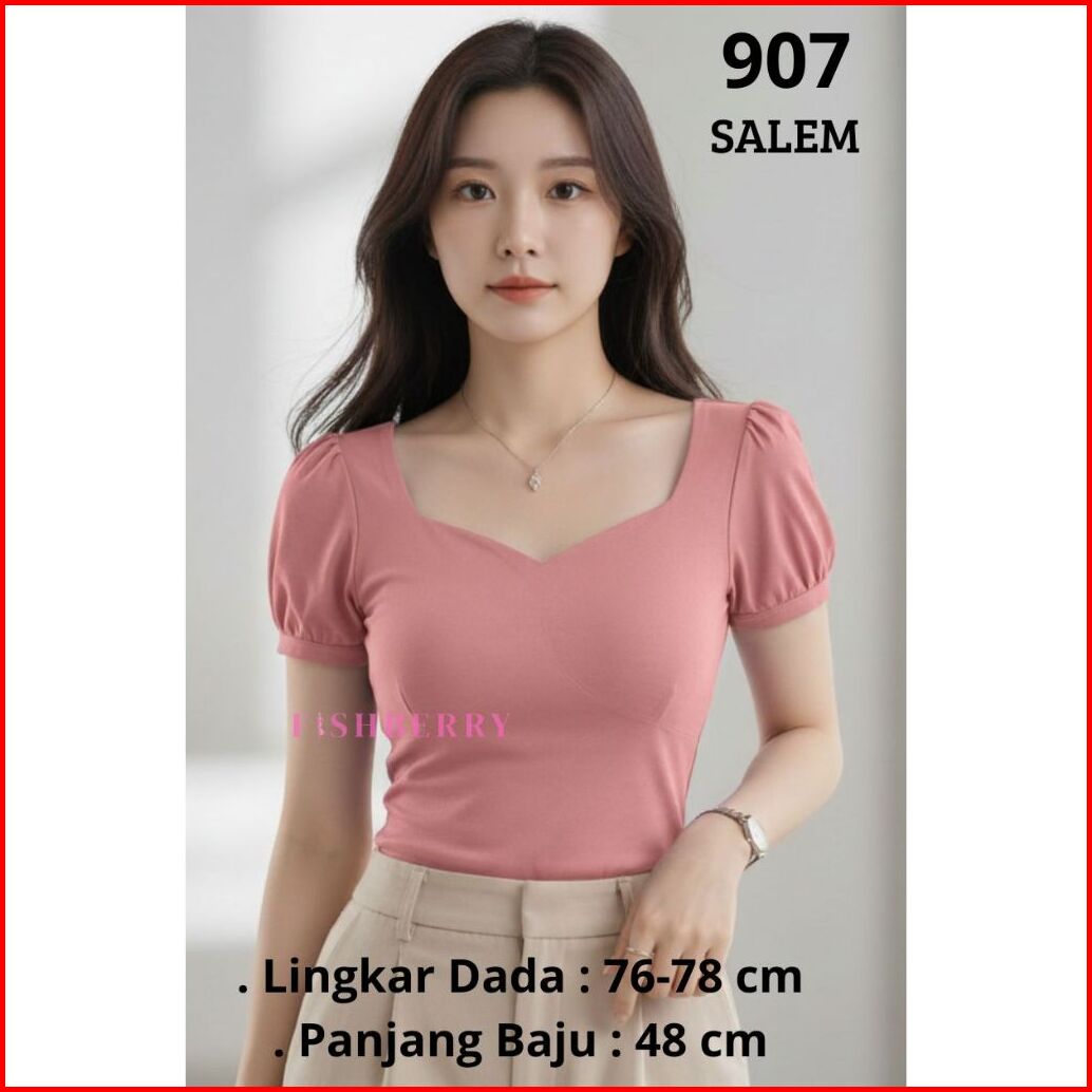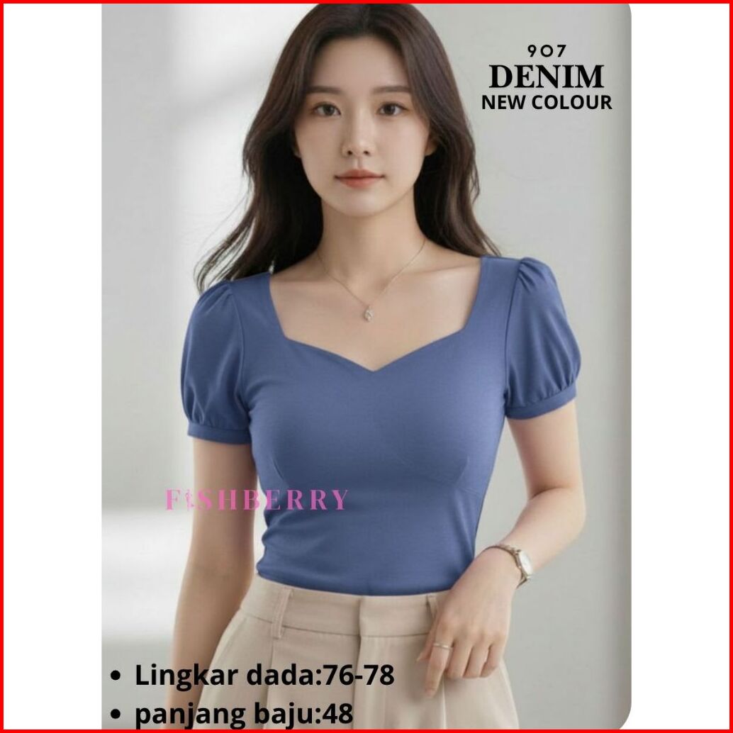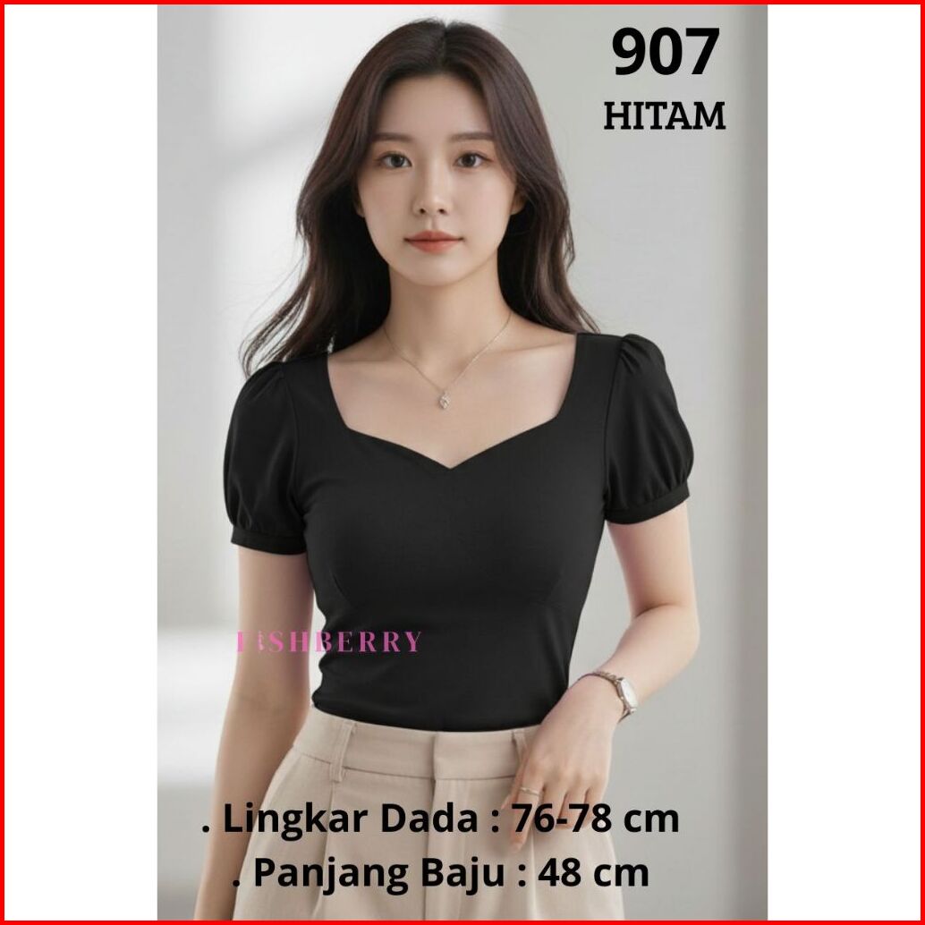 Fishberry Baju Wanita Polos Lengan Pendek Atasan Wanita Model Tangan Balon Kerut Bahan Spandek Rayon 907