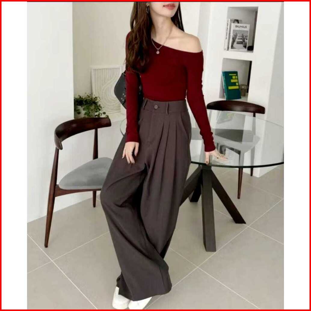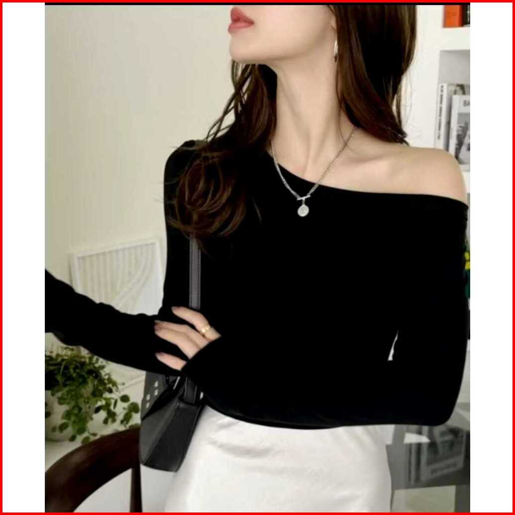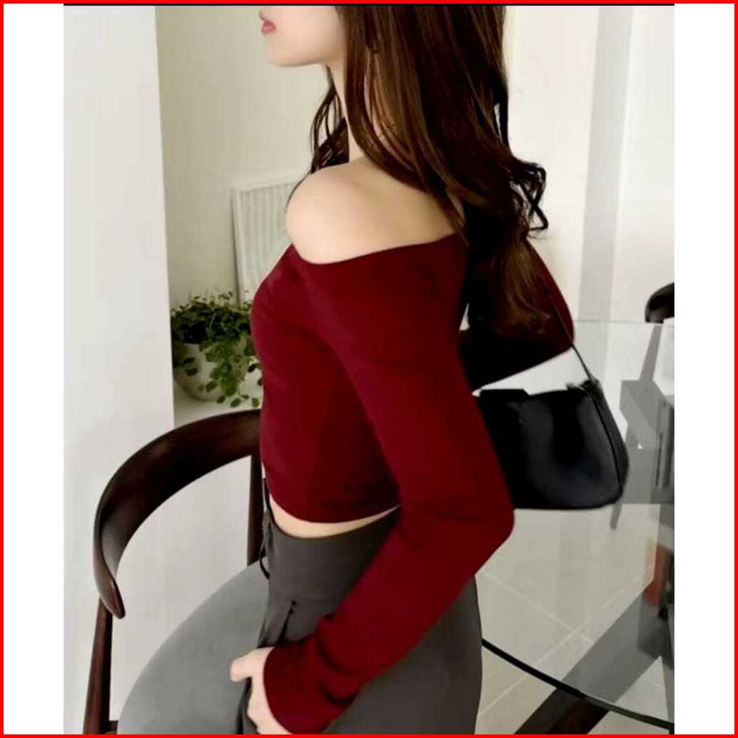 Fd Fashion Atasan Crop One Shoulder Wanita Casual Top Sabrina Off Shoulder Slim Fitting Lengan Panjang 6066