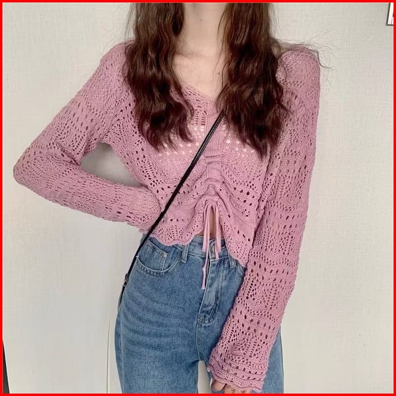 Mona Top Blouse Korea Wanita Drawstring Knitwear