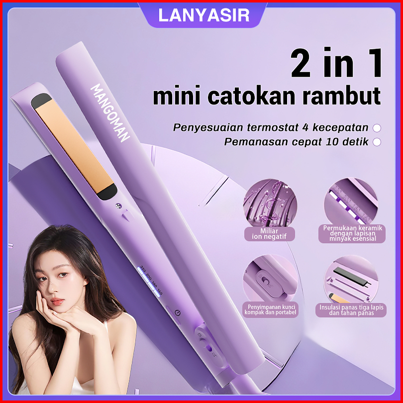 Mangoman Catokan Curly 2in1puluhan Juta Ion Negatif Catok Rambut 4 Pengaturan Suhu Pemanasan Cepat 10 Detik