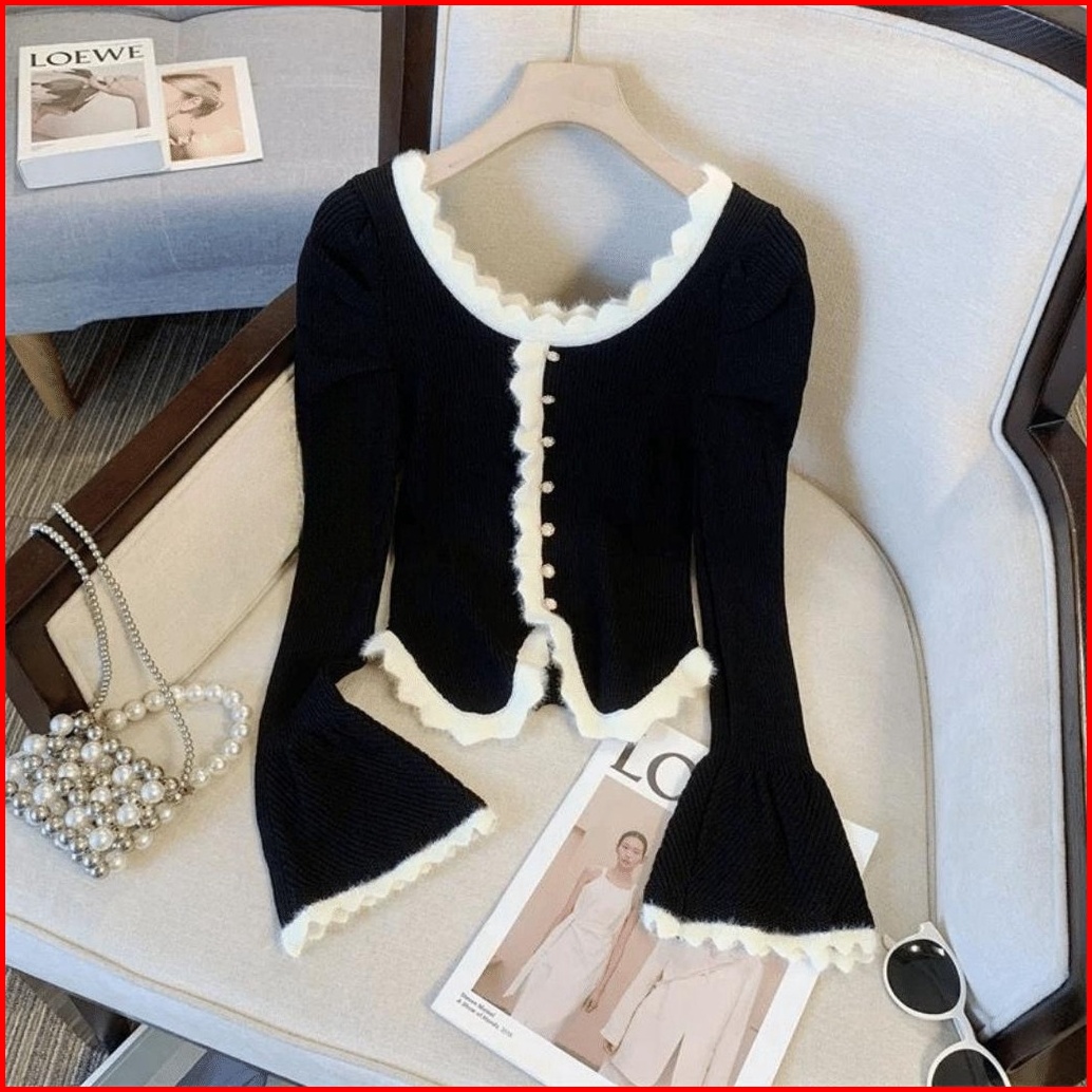 Monica Atasan Wanita Lengan Panjang Flare Knit Premium Baju Vintage Wanita Korean Style