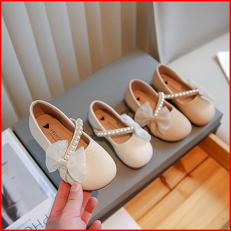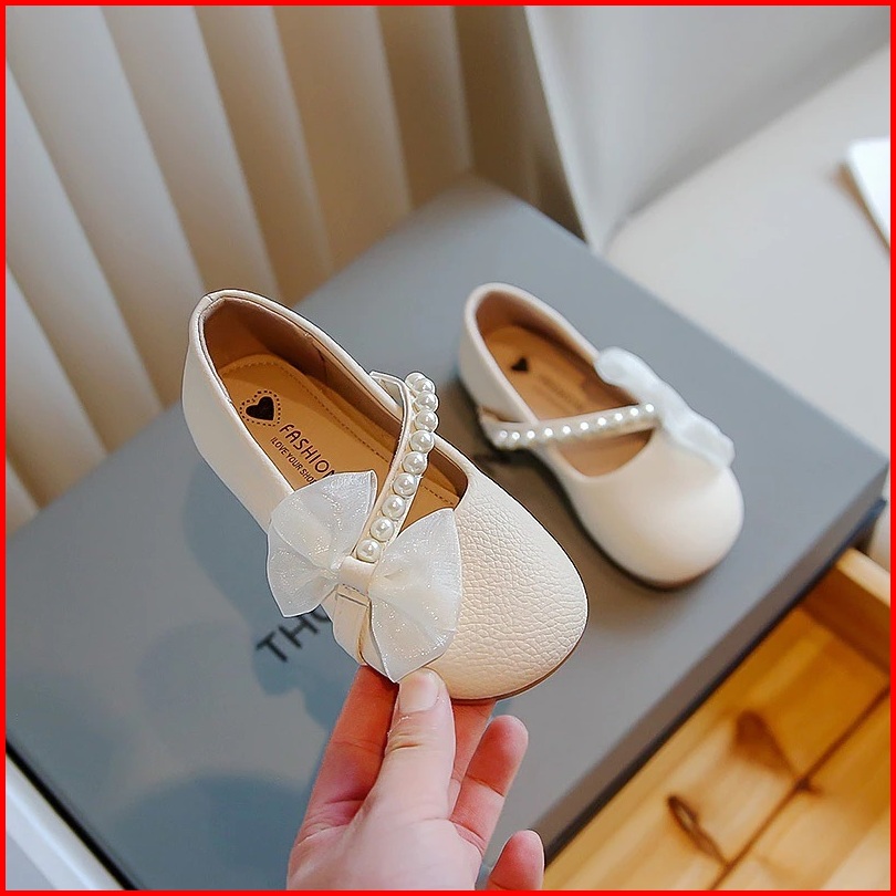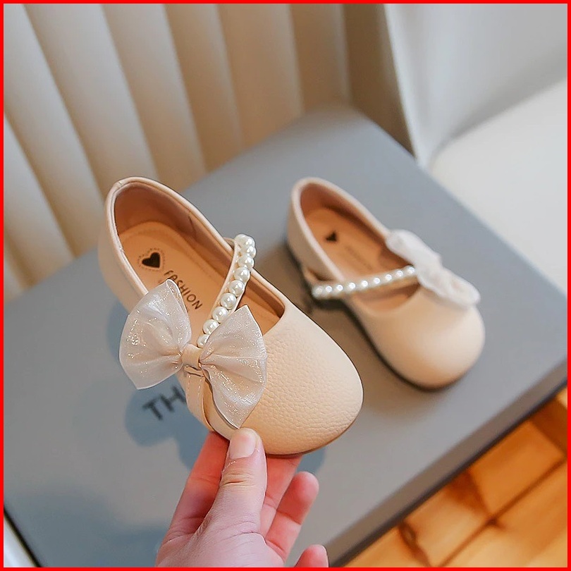 Gaya Korea Sederhana Anak Perempuan Warna Solid Sepatu Flat Kulit Kerut Mutiara Sol Lembut Anti Licin Sepatu Anak 2-12 T