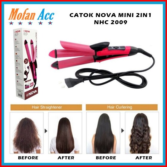Catok Nova Mini 2in1 Nhc 2009 Curl Straight Hair Beauty Set Catokan Keriting Lurus Curly Hair Iron